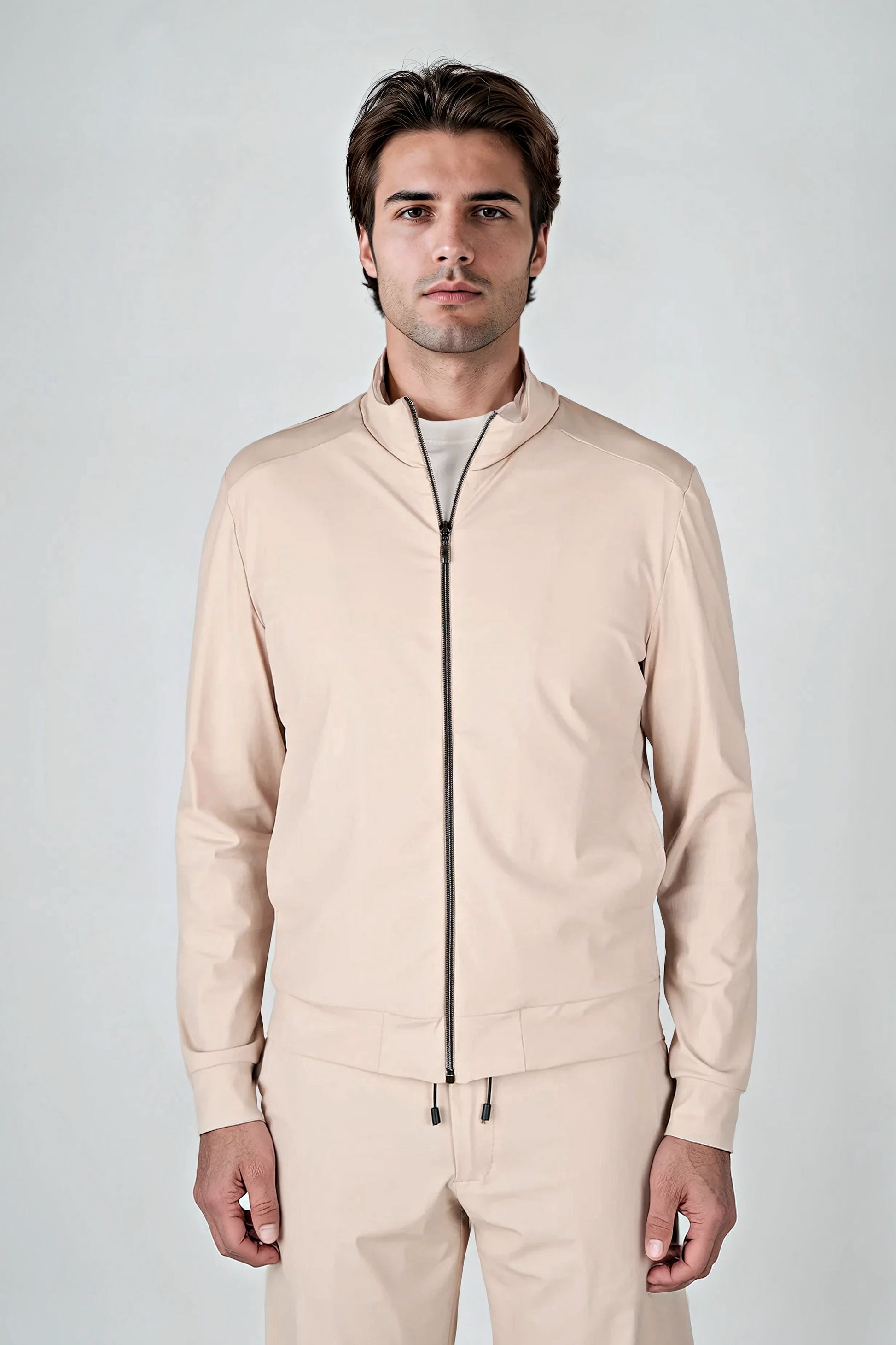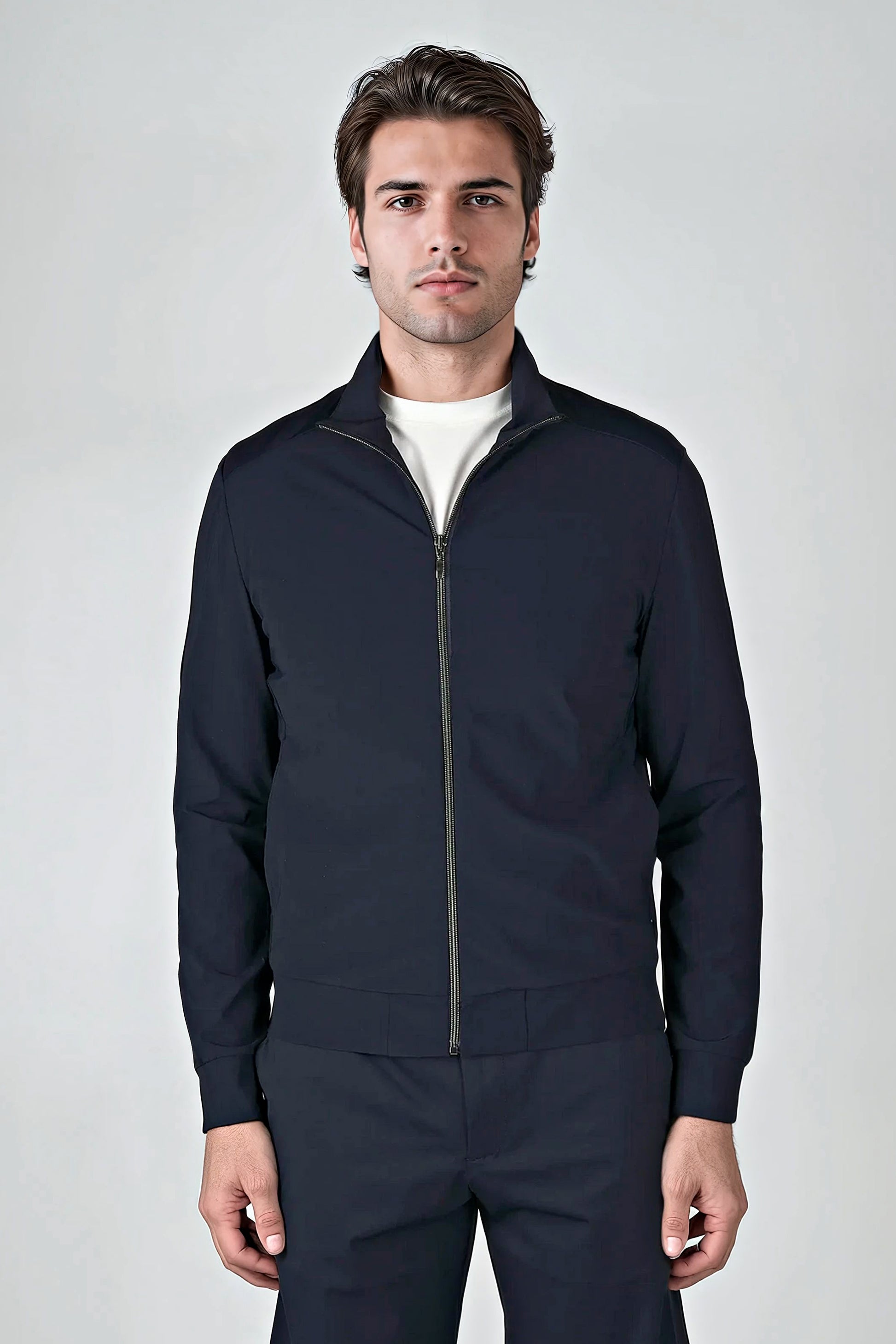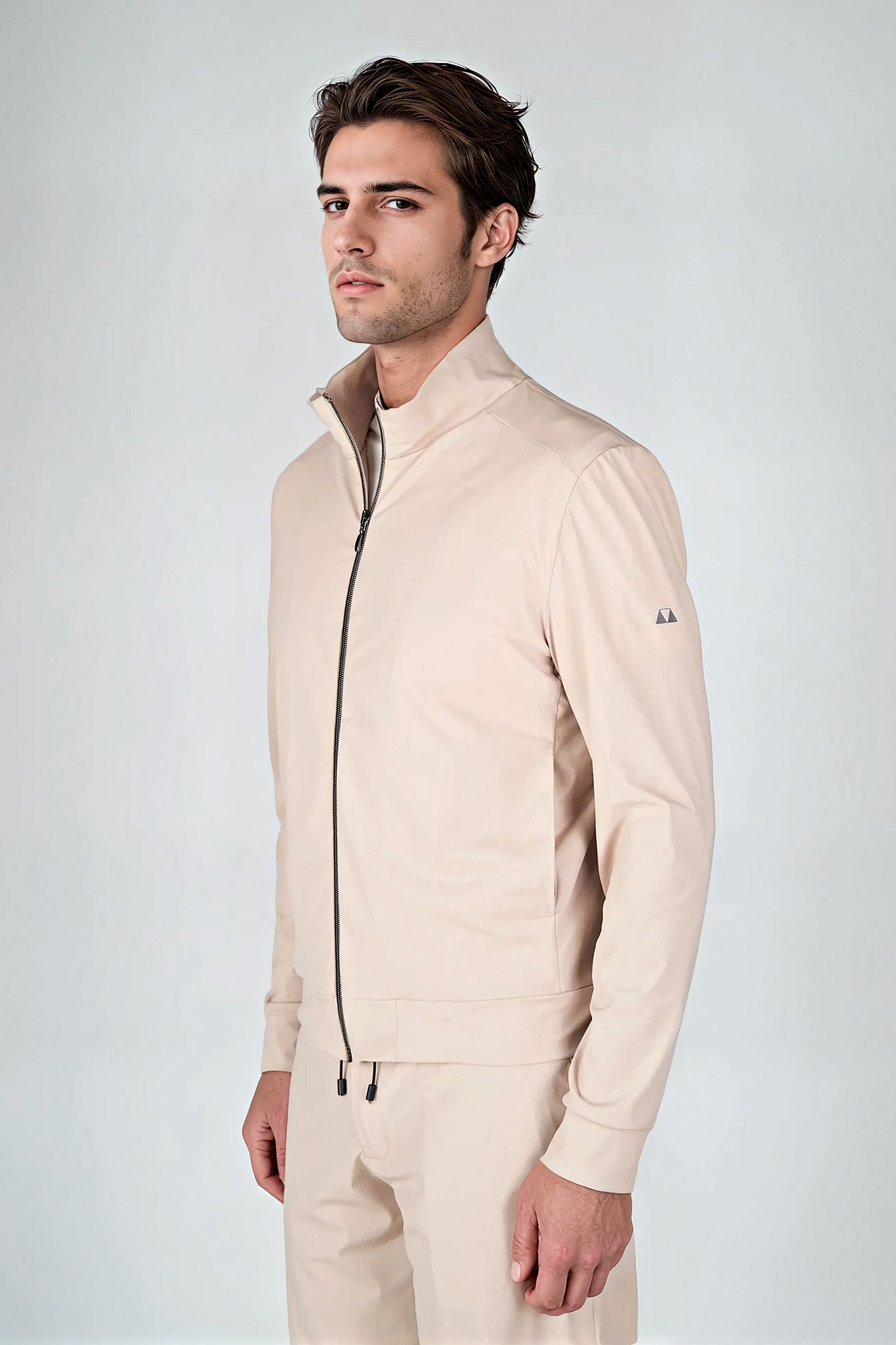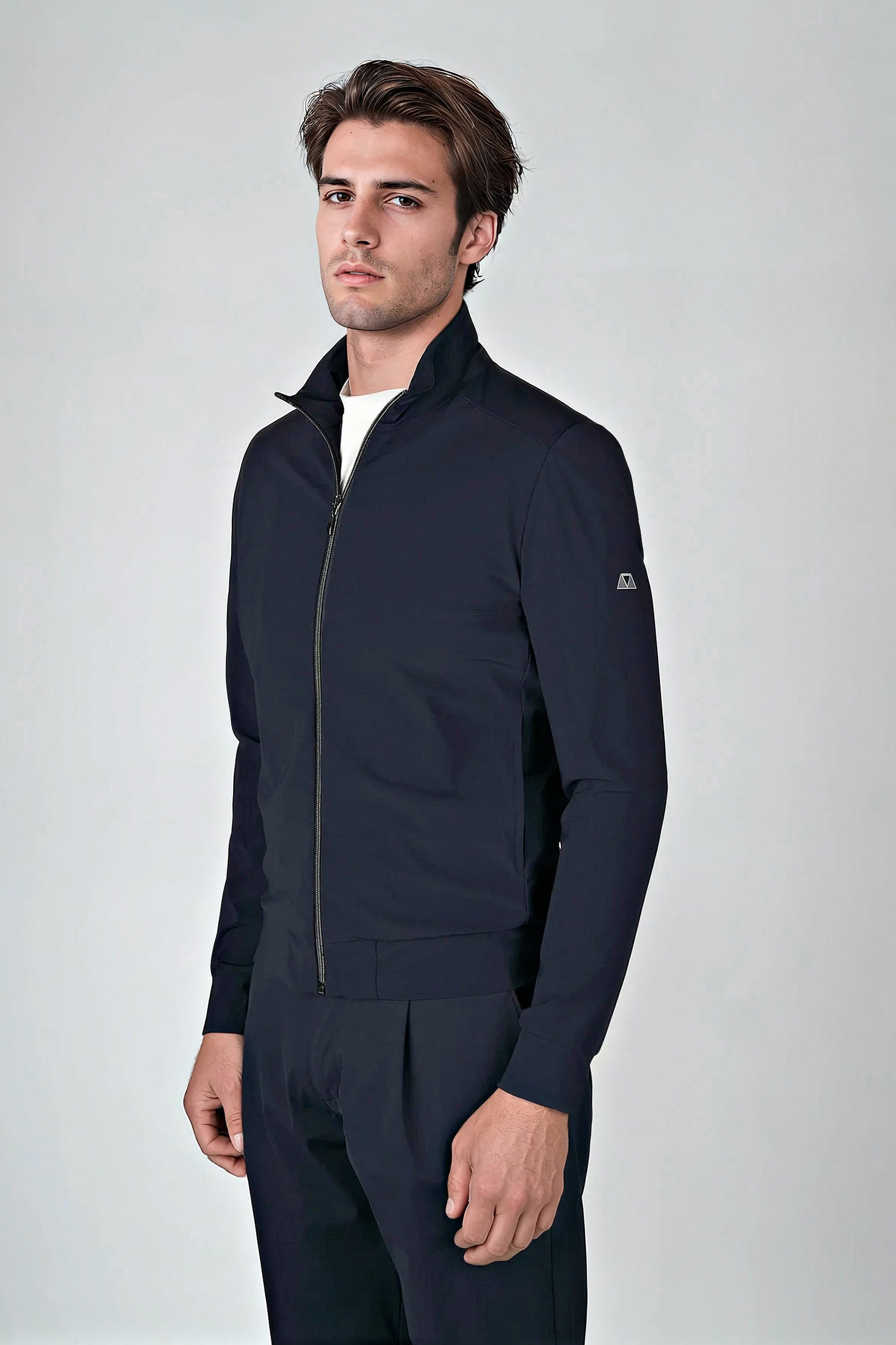 Zip-up jacket, stretch technical fabric, 75% PA 25% EA, high collar, stretch hem and cuffs