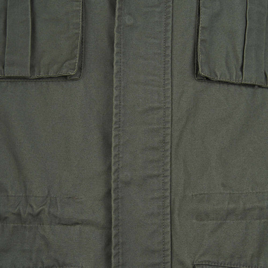 Military-inspired field jacket reworked for the city. Cut from a compact, washed-look canvas, it features a padded stand collar with wind flap and a small side zip, buttoned epaulettes, and four bellowed patch pockets—two on the chest and two at the hips—for authentic utility. The front closes with a full-length zipper covered by a snap-button storm placket. Adjustable snap cuffs, a straight hem and pronounced top-stitching emphasize the rugged character. The hand is substantial yet pliable: the fabric blends organic cotton and polyurethane to add structure, better crease retention and light moisture protection without extra weight. Regular fit designed to layer over knitwear; mid-thigh length in true field style.