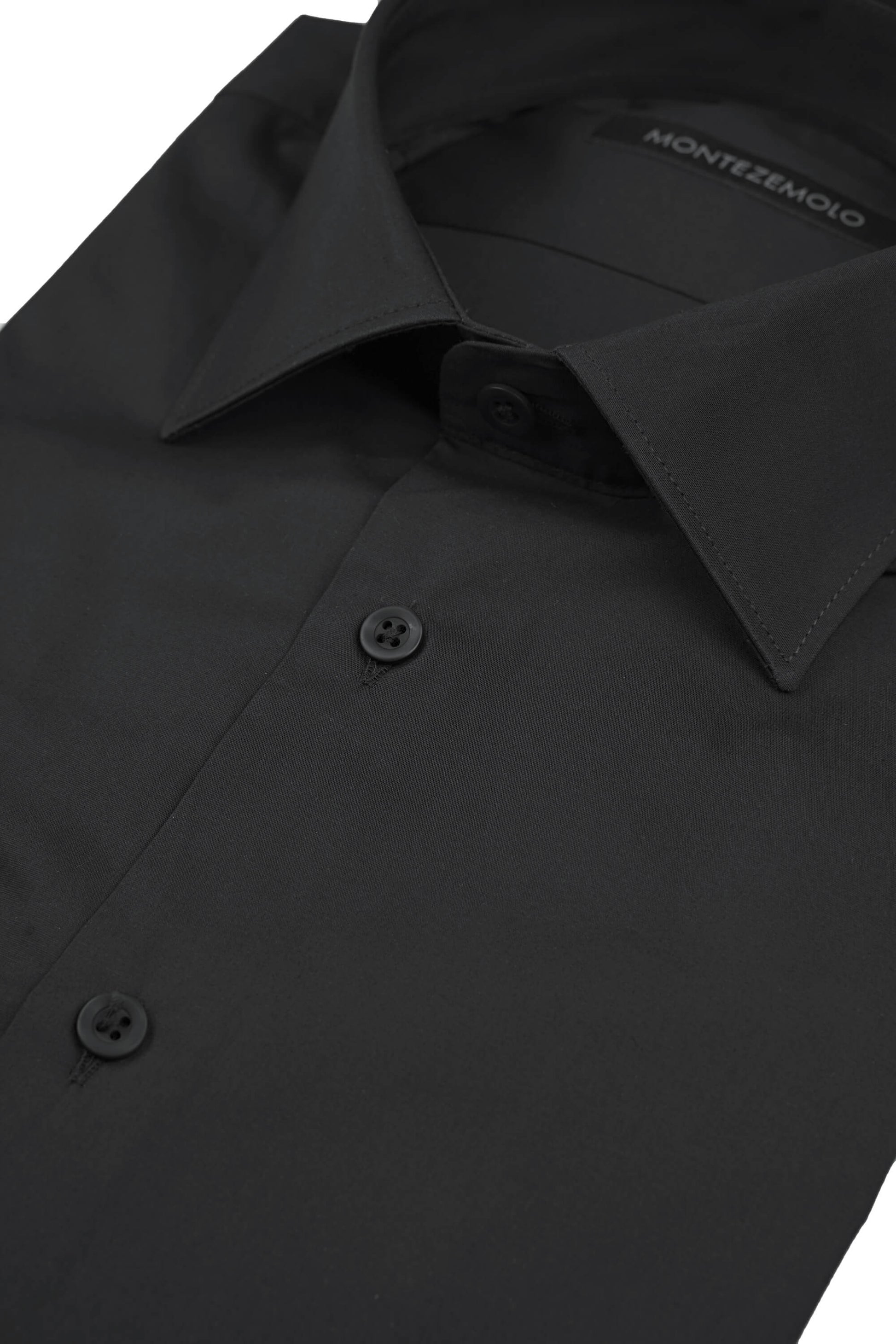 Details: Plain Shirt; Popeline Fabric; Double-twisted cotton; Italian collar; Front buttons closure; Angled single button cuffs; Rounded hem; Long sleeves; Back pleats; Regular fit; Composition 100%CO