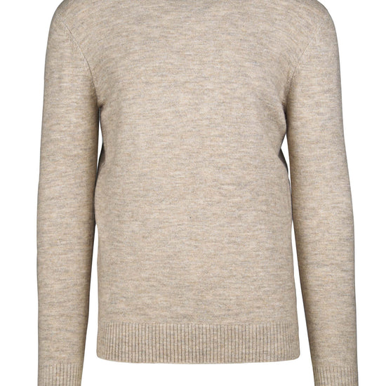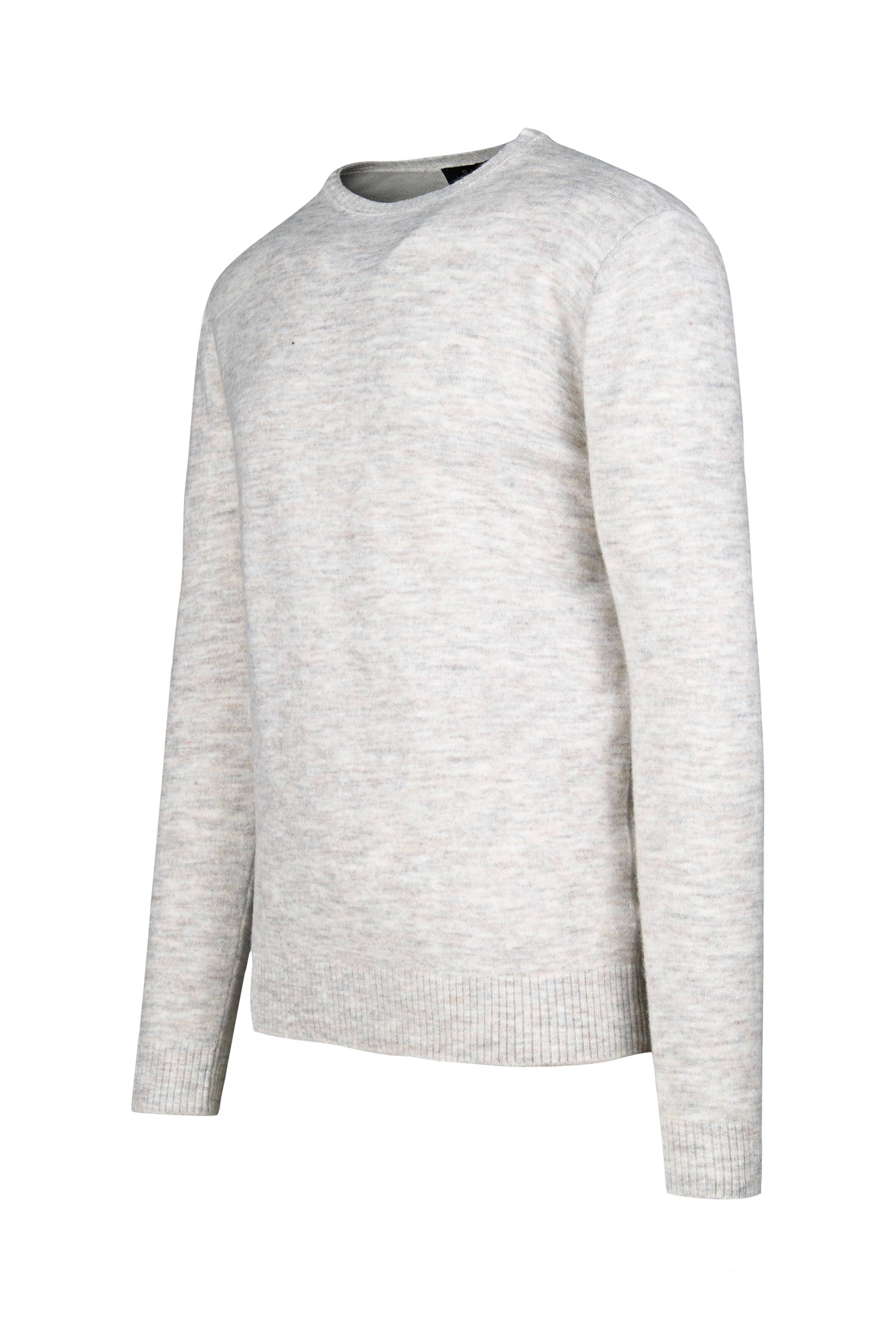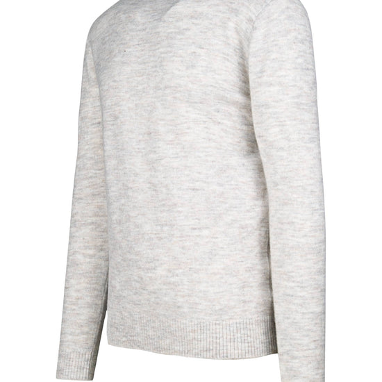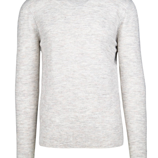 Crewneck sweater crafted from bouclé yarn with a soft, cloud-like mélange appearance. The tiny looped structure creates a subtly textured surface that traps air for warmth while remaining light and breathable—ideal as an everyday layer mid-season and under blazers in winter. The neckline features a compact rib with a refined sweatshirt-style; fully-fashioned armholes and shoulders keep lines clean and comfortable. Ribbed cuffs and hem hold the shape wear after wear. The fit is regular—easy through the body with a classic length that sits neatly at the waist. Offered in four versatile colours that pair effortlessly with denim, chinos or flannel trousers.