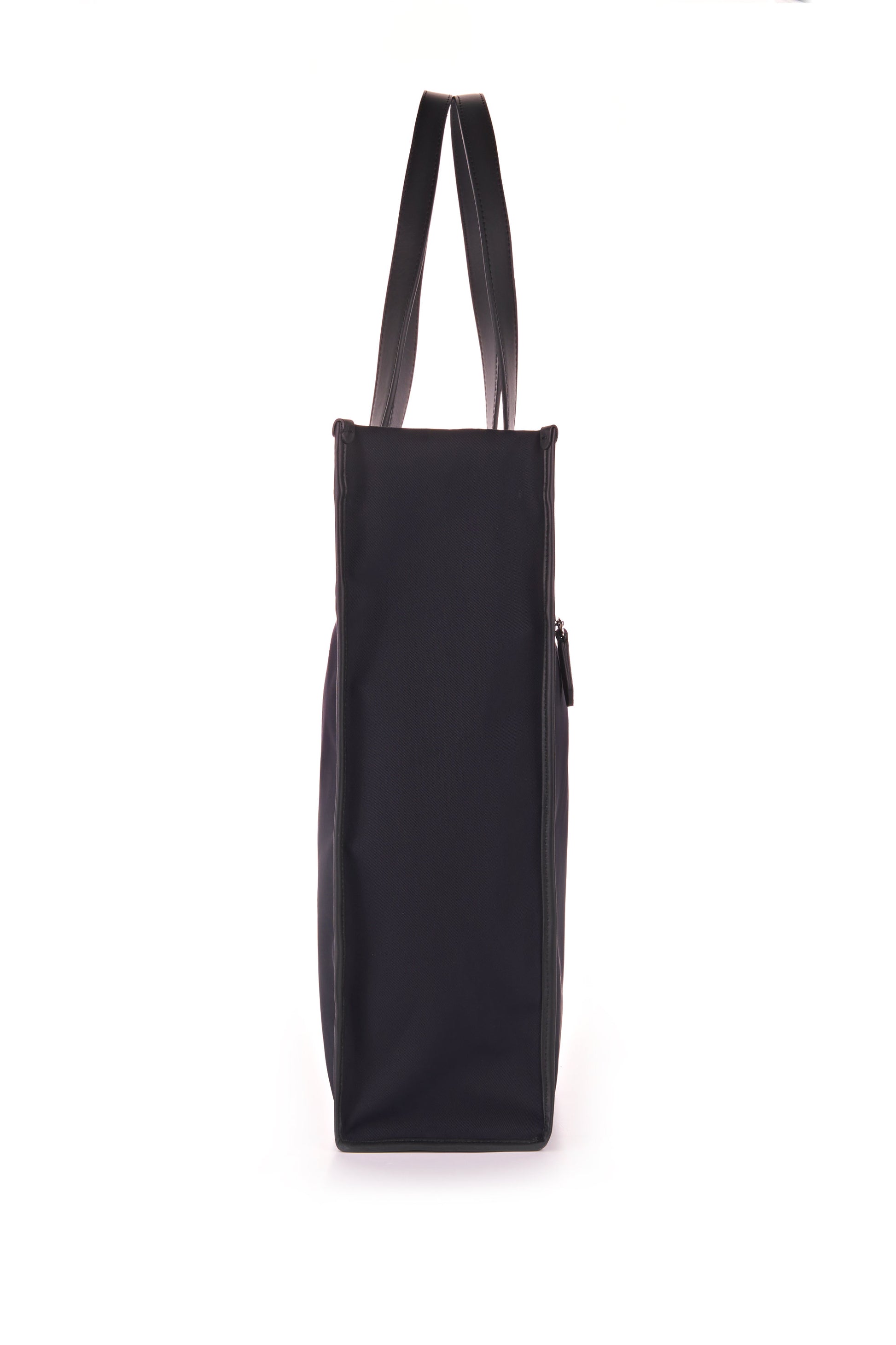 Made from a textured nylon canvas, this tote bag features a utilitarian design with tone-on-tone texture, leather details, handles and a detachable shoulder strap.
