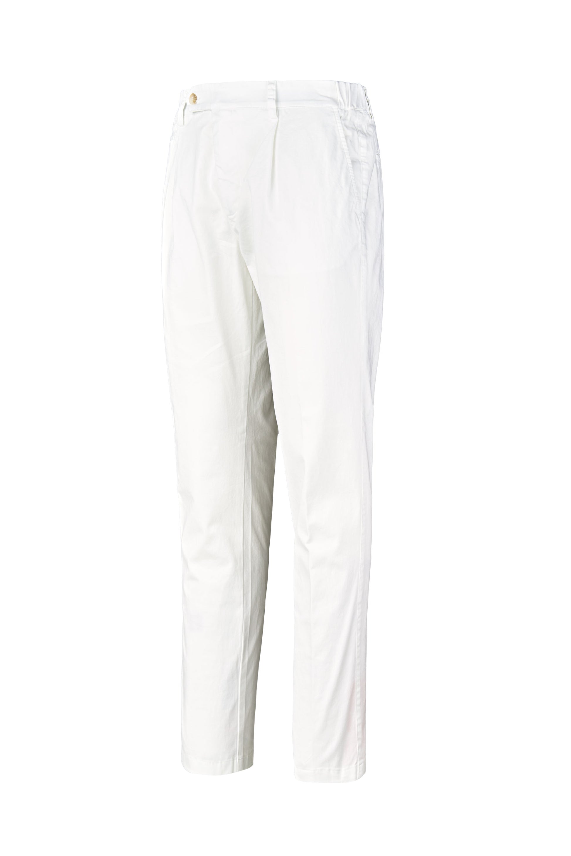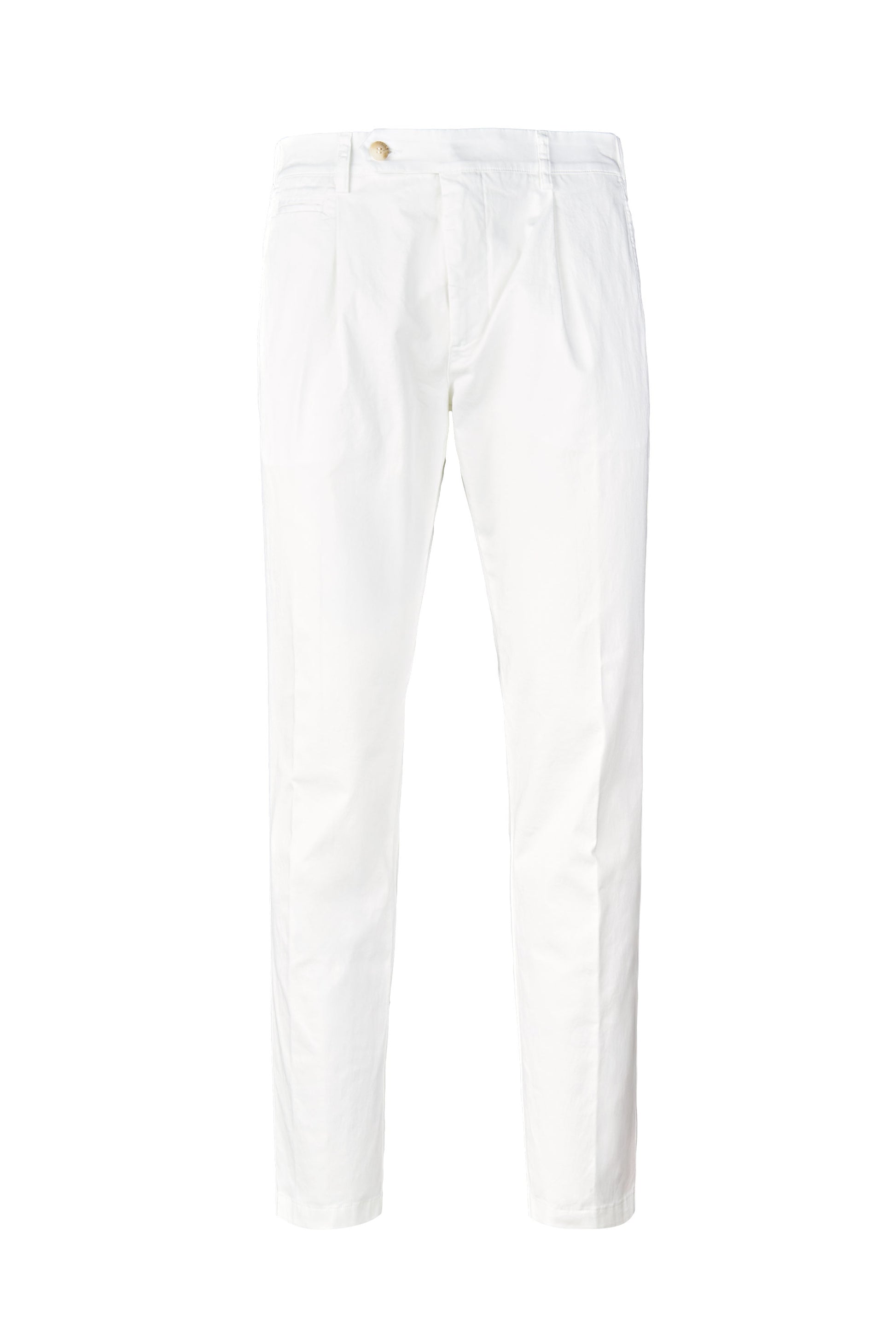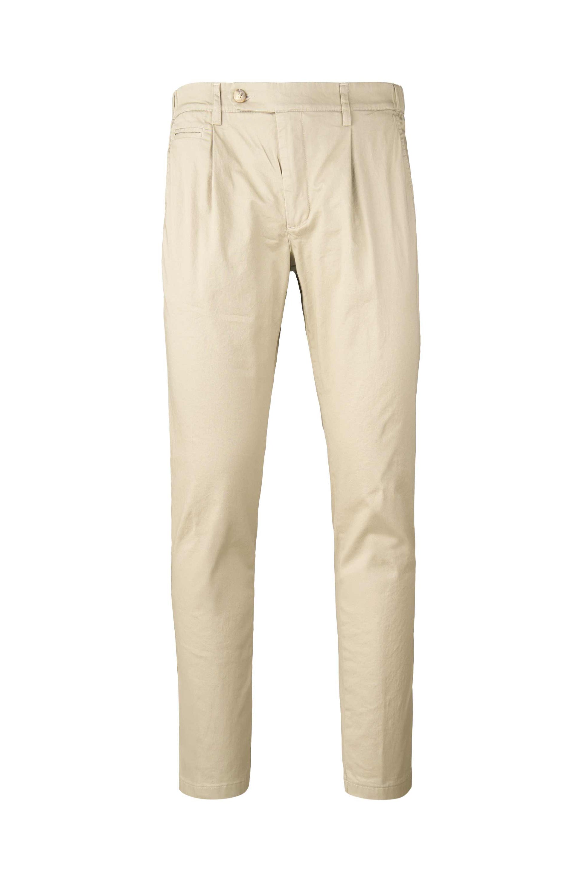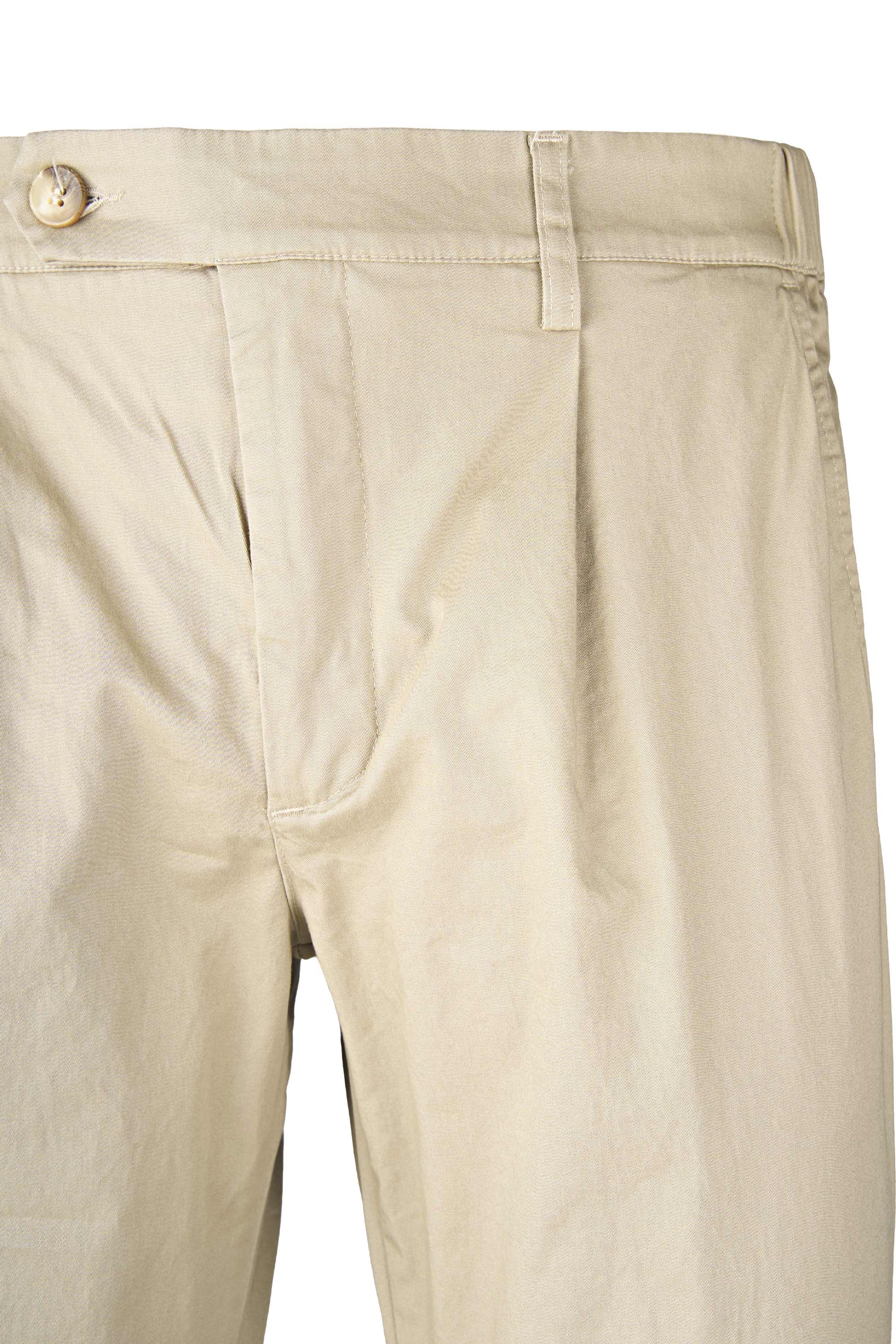 Pleated front for a tailored fit; Button, hook, and zip fastening; Slanted side pockets; Back welt pockets; Comfortable, versatile design