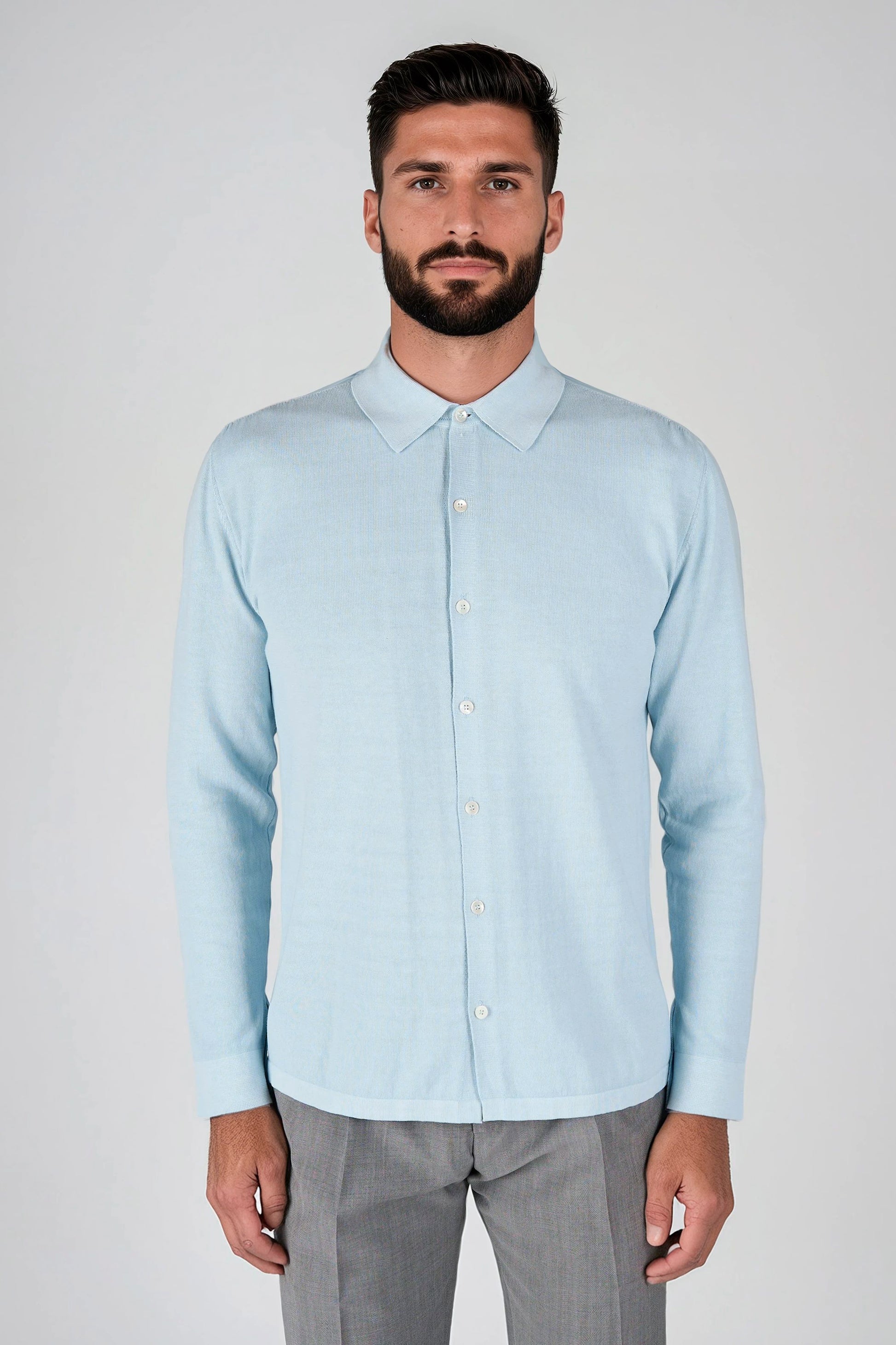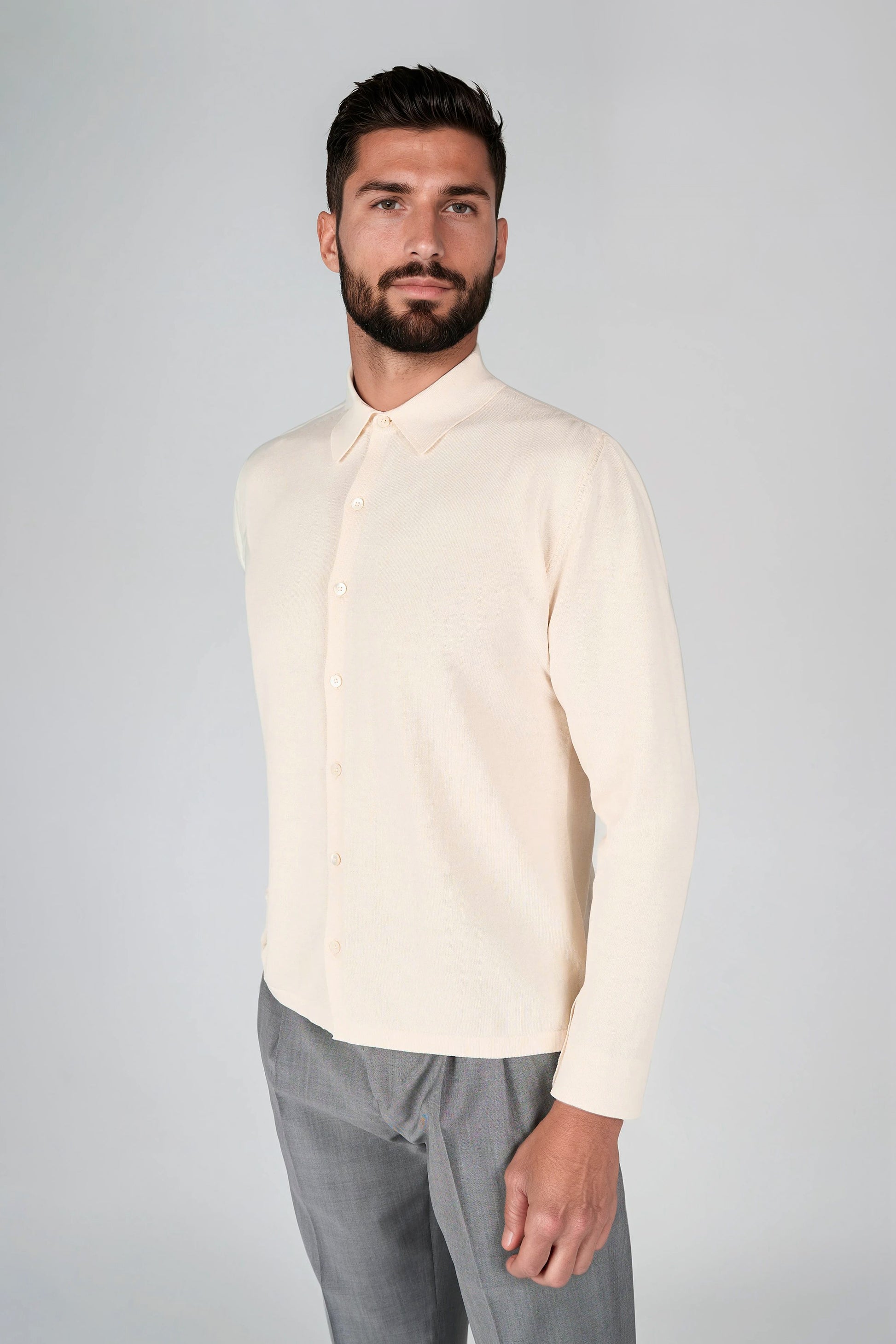 Shirt crafted from soft cotton crepe jersey weave, featuring mother-of-pearl buttons. Ultra-soft texture ensures supreme comfort, ideal for refined casual looks and daily wear.