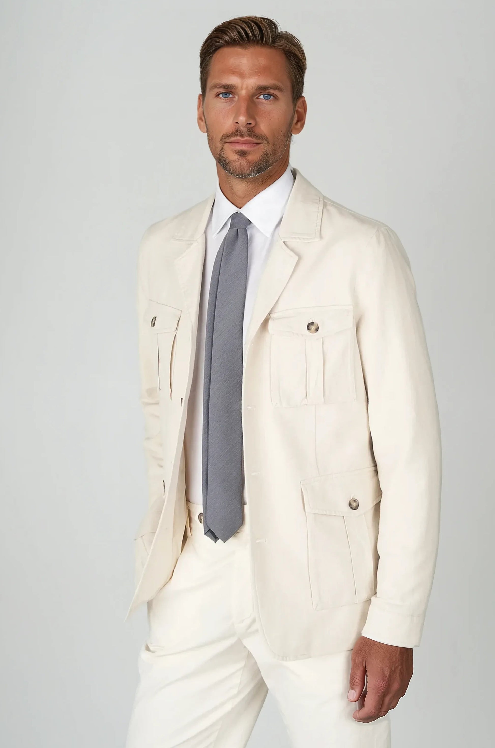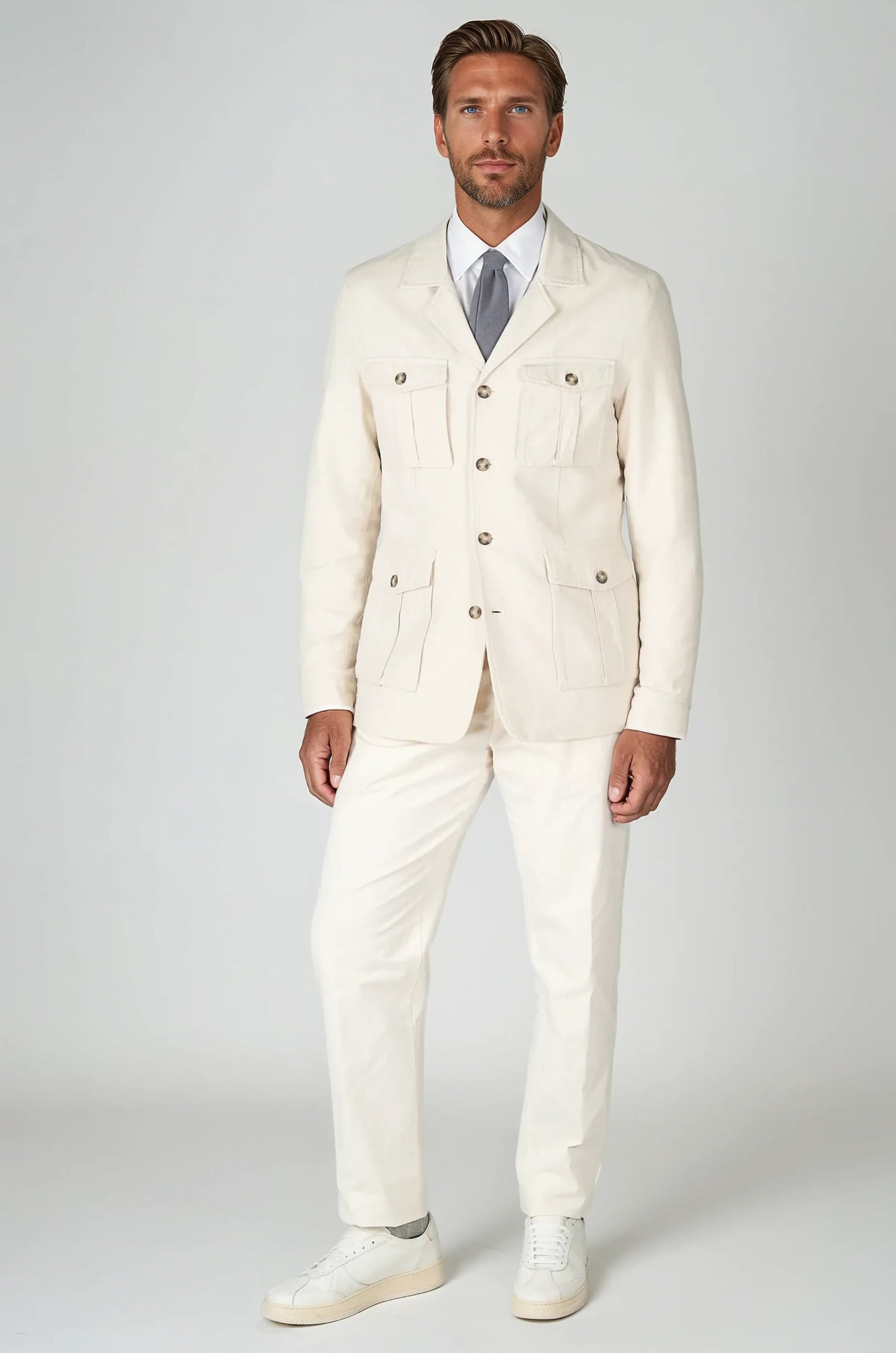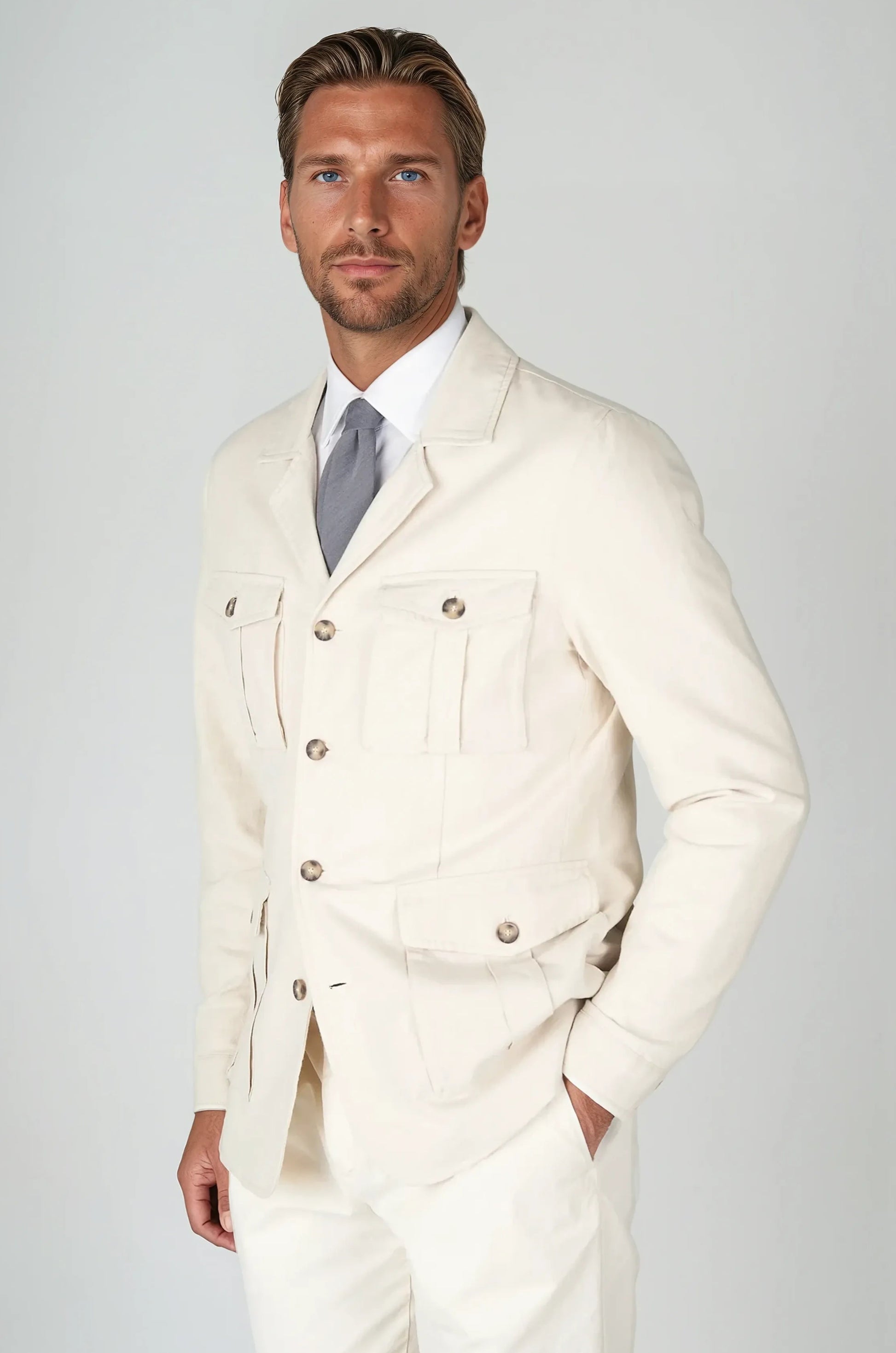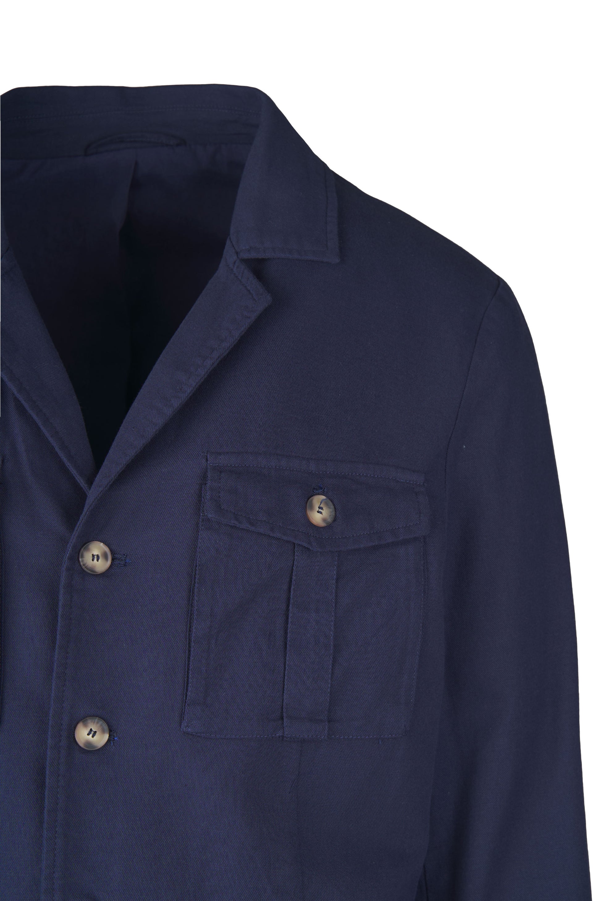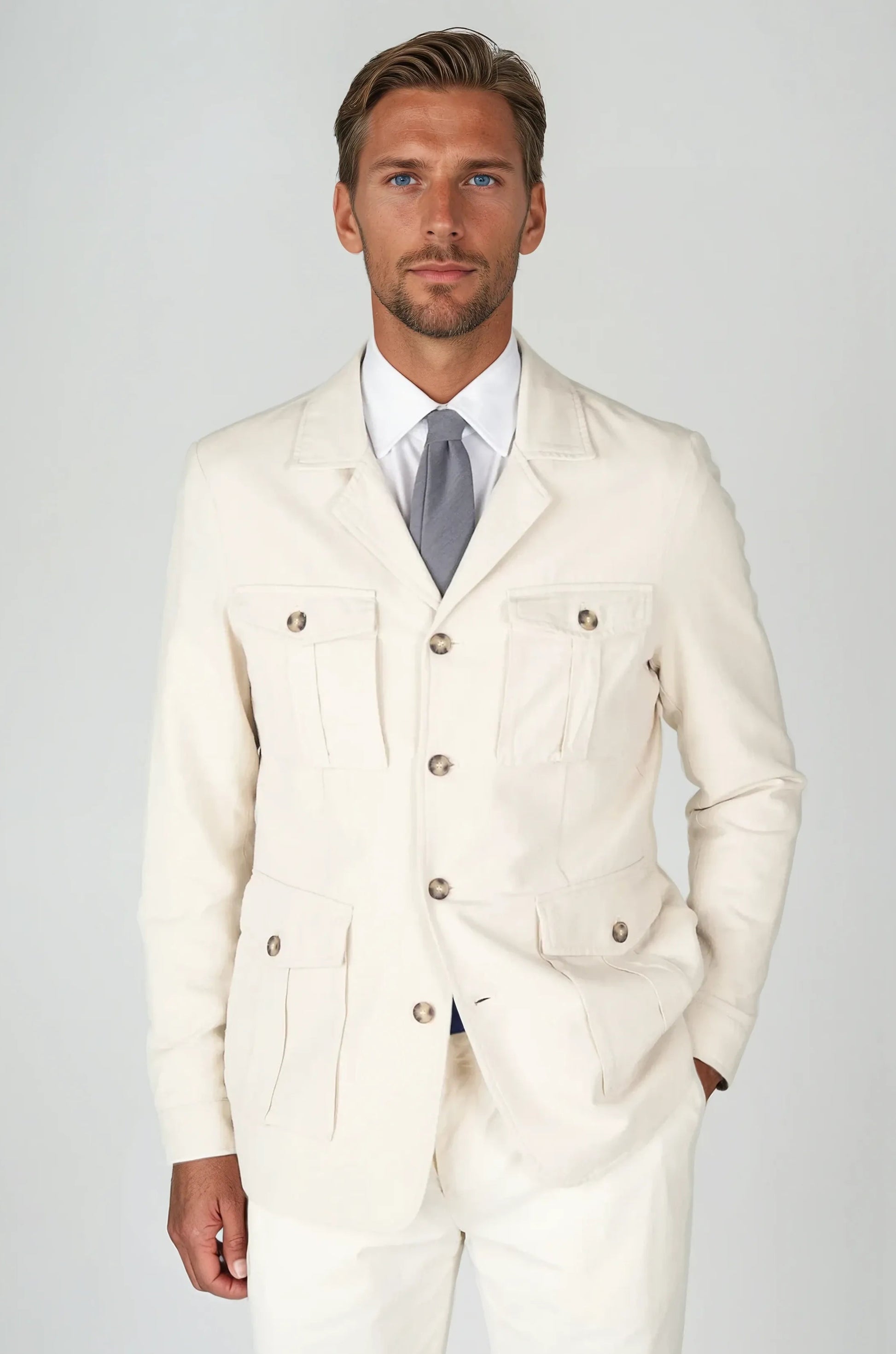 An unstructured, unlined field jacket crafted from a breathable linen-cotton blend. Featuring exposed buttons and spacious bellow pockets, it conveys a relaxed yet modern elegance. The fabric’s natural lightness ensures comfort in warmer weather, making this jacket the perfect choice for anyone seeking practicality and style in one garment.