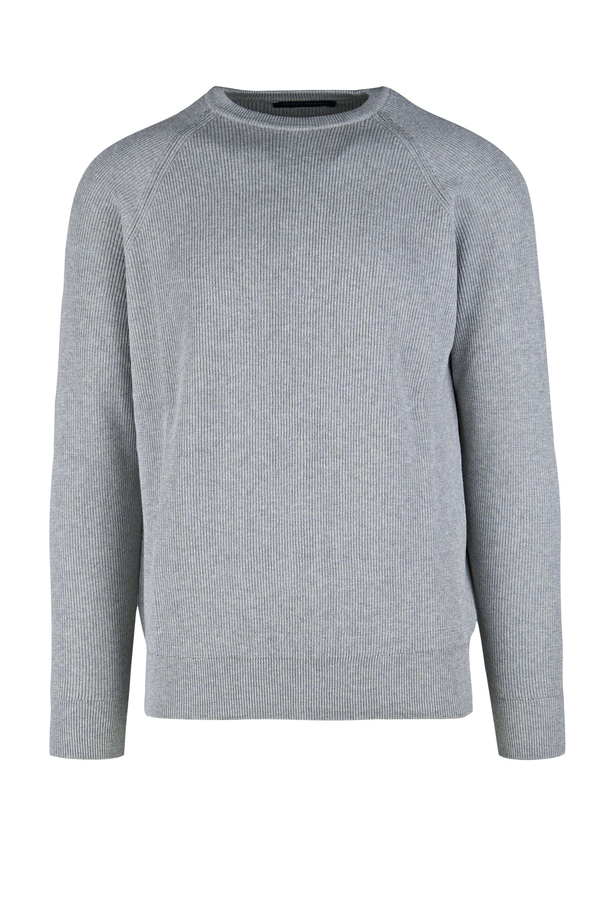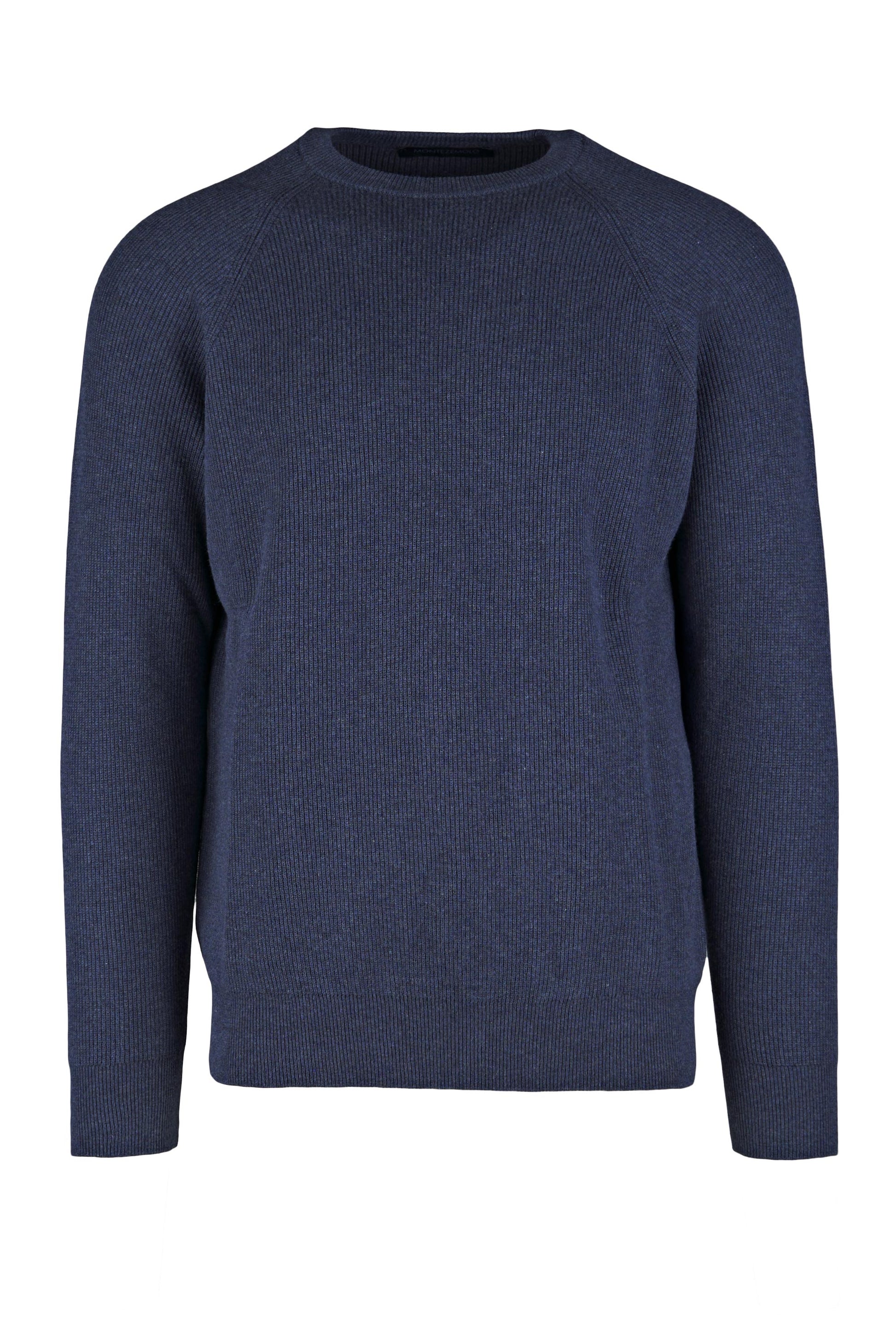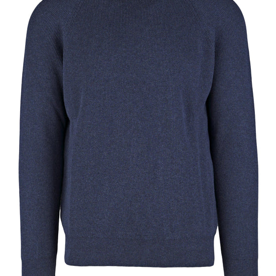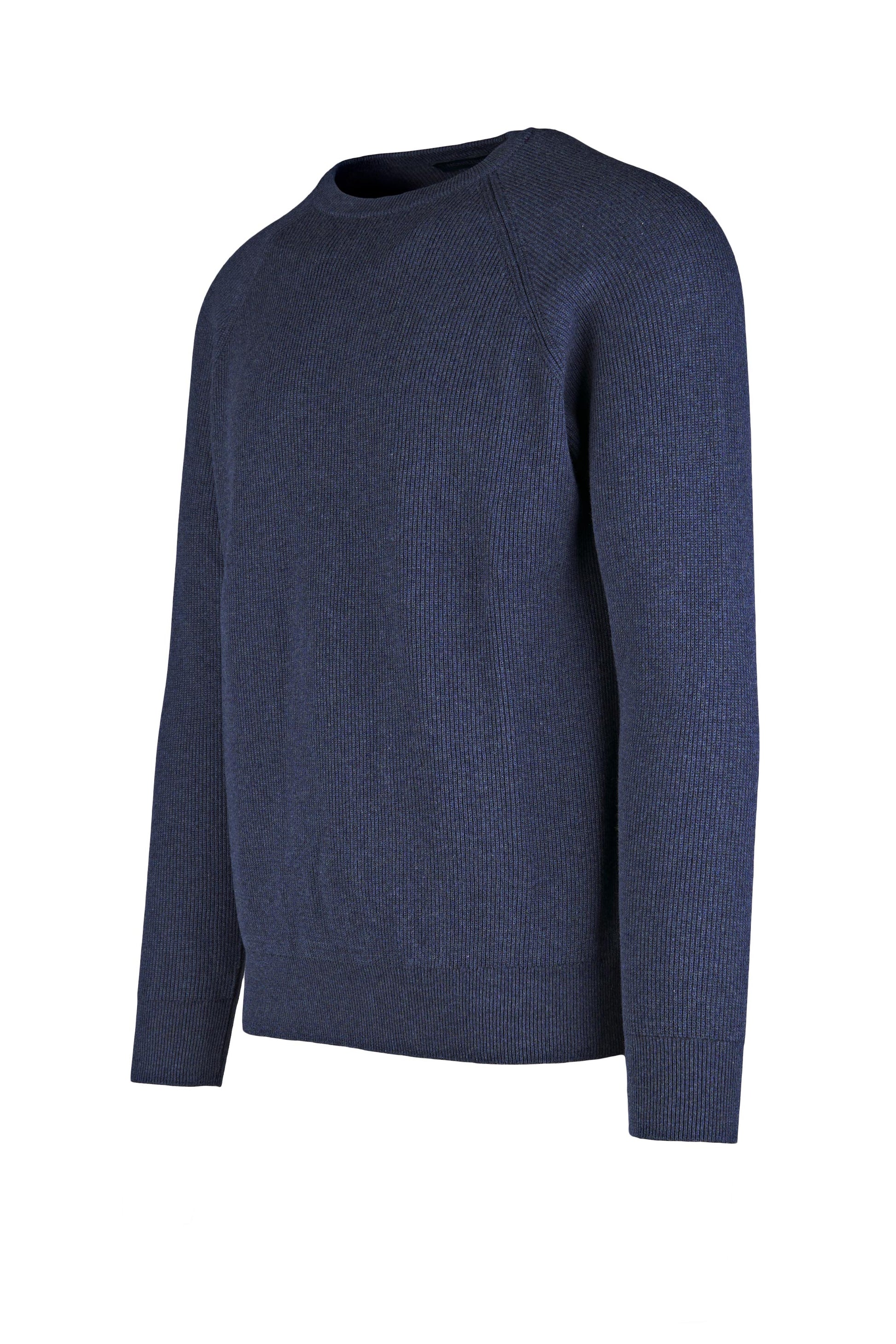 Double-rib crew neckline; raglan sleeves for added comfort and mobility; compact rib knit with warm hand feel; winter-weight pure cotton—breathable and durable; elasticated rib cuffs and hem for shape hold; fully-fashioned construction with clean seams.