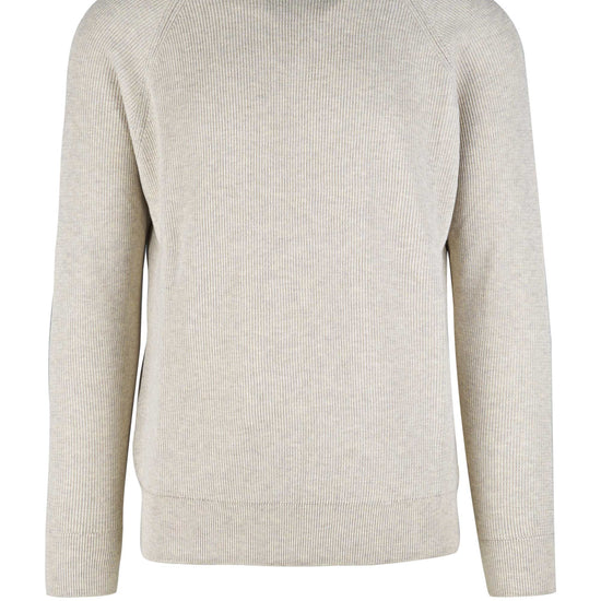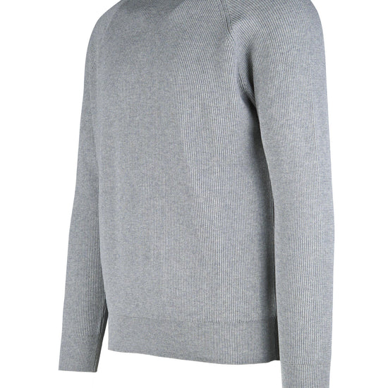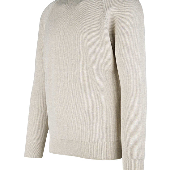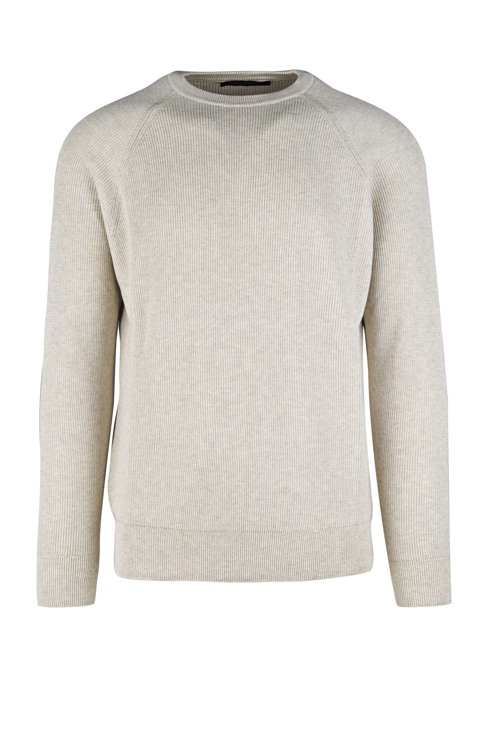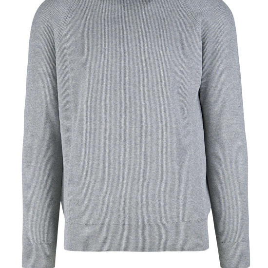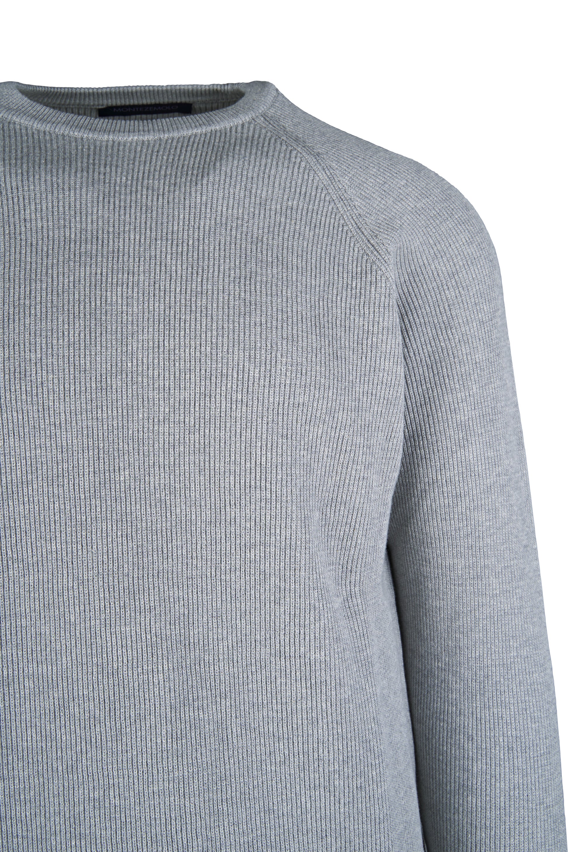 Double-rib crew neckline; raglan sleeves for added comfort and mobility; compact rib knit with warm hand feel; winter-weight pure cotton—breathable and durable; elasticated rib cuffs and hem for shape hold; fully-fashioned construction with clean seams.