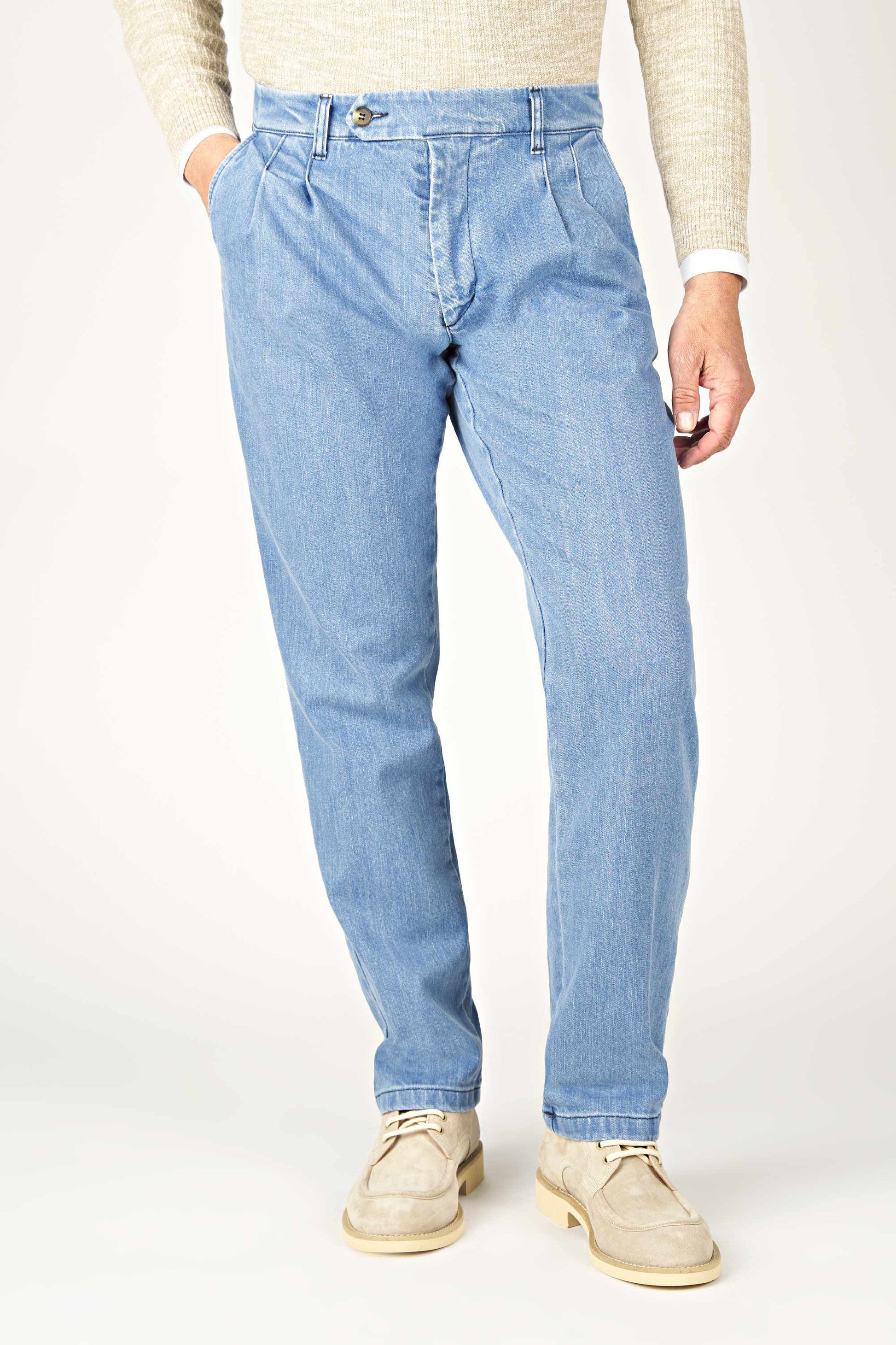Double pleats Button and zip closure Two welt pockets Two back pockets with button
