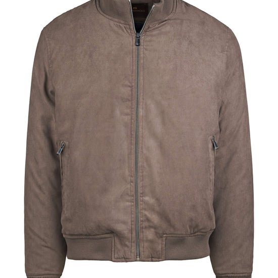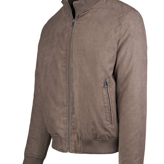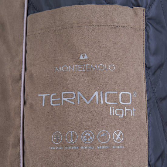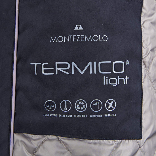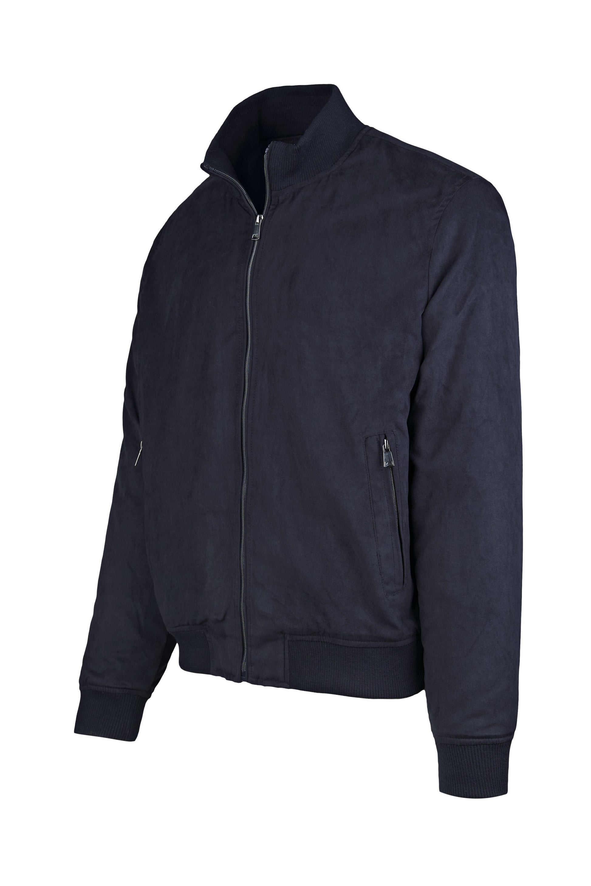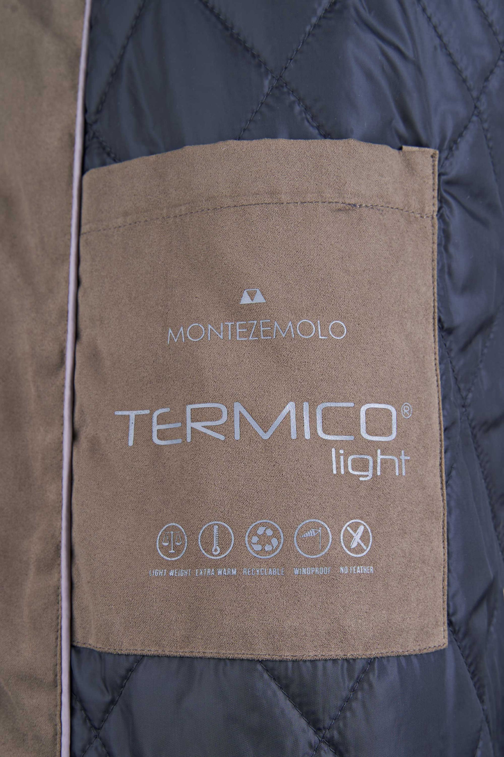 Faux-suede shell, velvety touch. Rib-knit stand collar, rib cuffs and hem. Full front zip closure. Zipped welt pockets. Diamond-quilted lining. Termico Light padding: warm, lightweight, recyclable, feather-free. Clean look.
