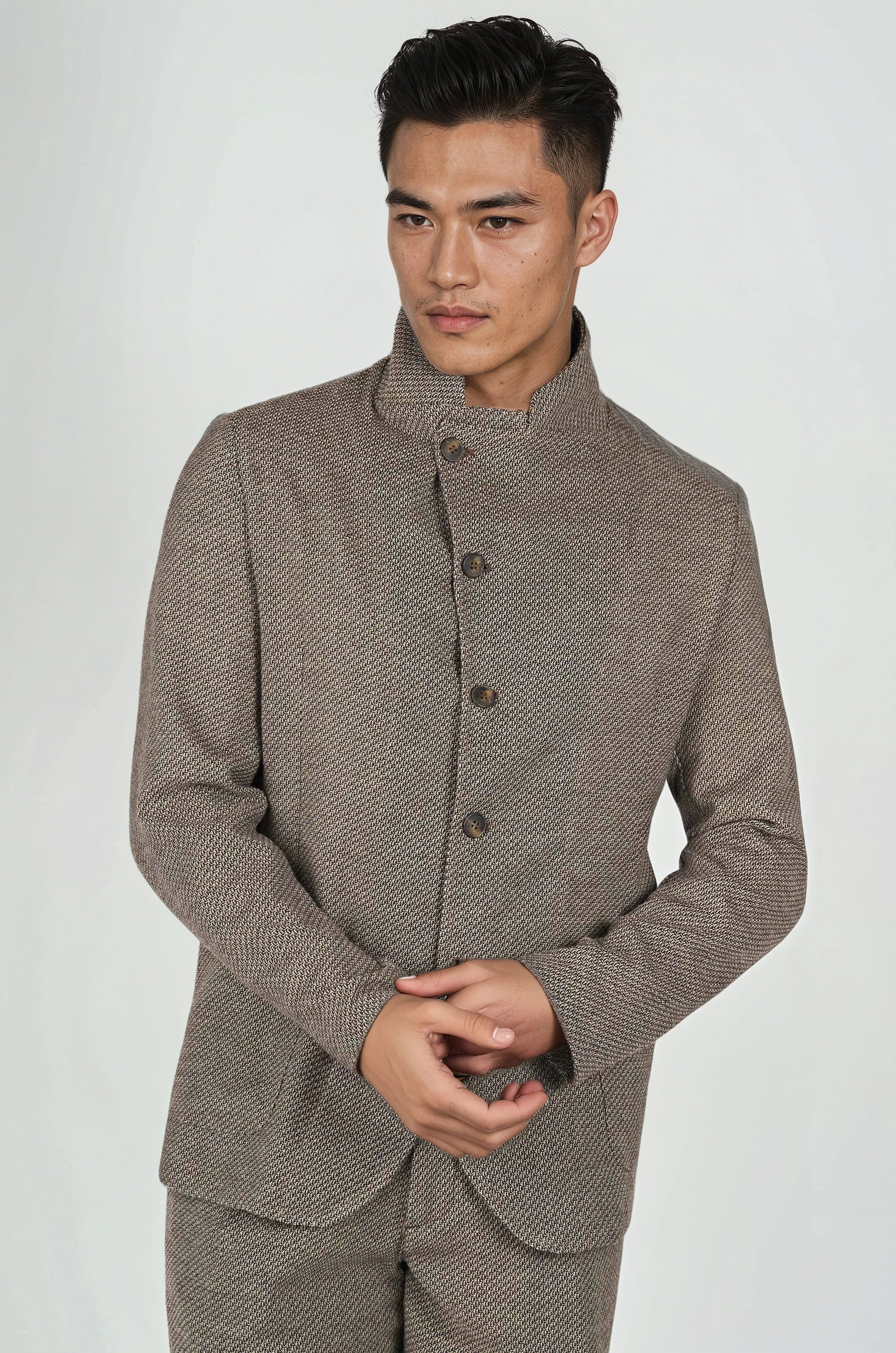 Unstructured, unlined jacket crafted from a refined wool blend featuring a micro giro-inglese weave pattern. The contemporary silhouette gives this piece a relaxed yet elegant attitude. The design is minimal yet rich in sartorial details. The lightweight construction and soft hand feel make it ideal for early season wear. Perfect worn with the matching bermuda shorts or mixed for a more casual style.