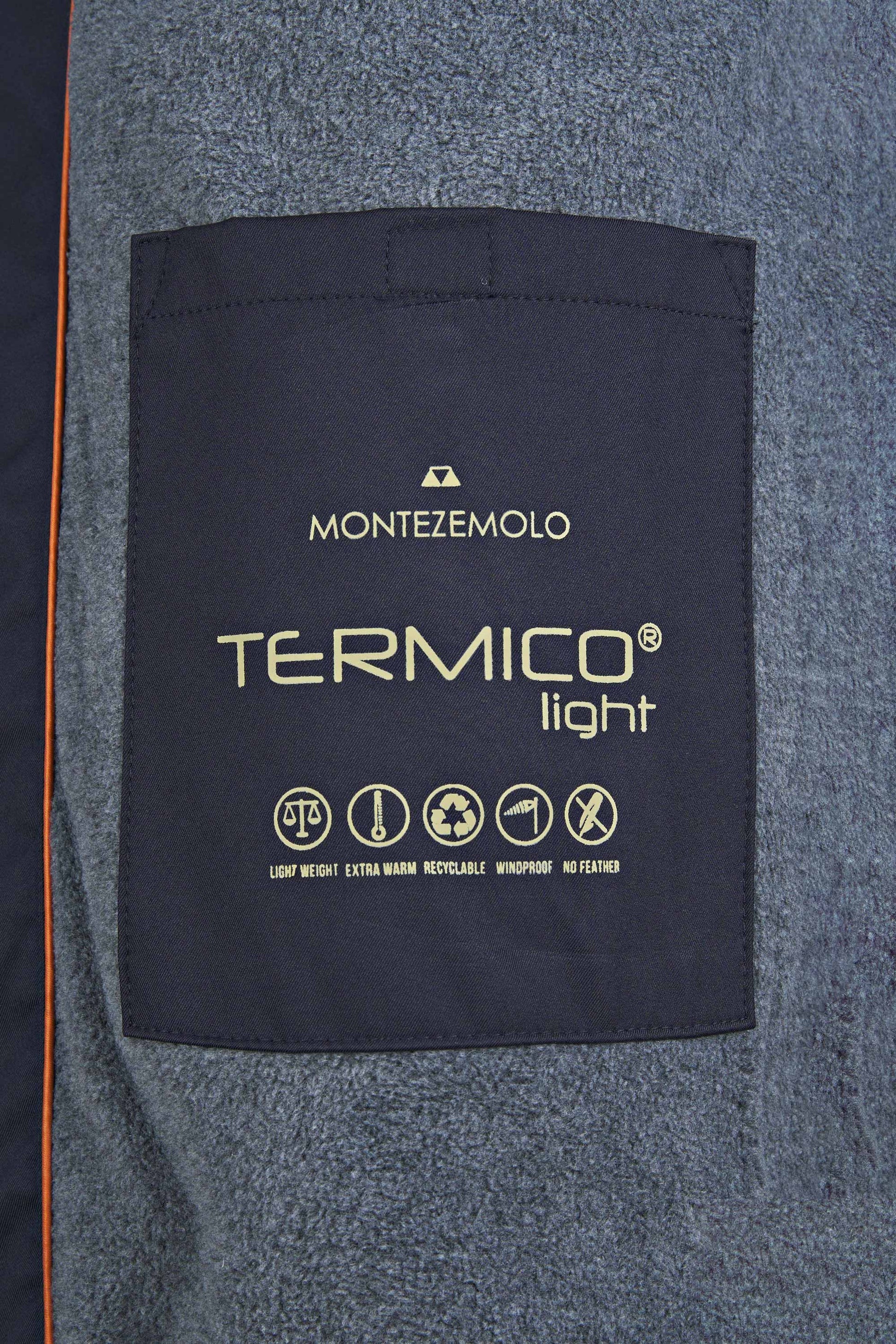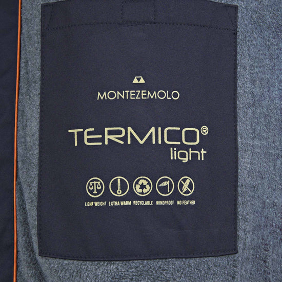 Wind-resistant matte polyester shell; TERMICO® light insulation—lightweight, extra-warm, recyclable and feather-free; tall rib-lined stand collar; full front zip; clean zippered welt pockets; ribbed cuffs and hem for fit and heat retention.