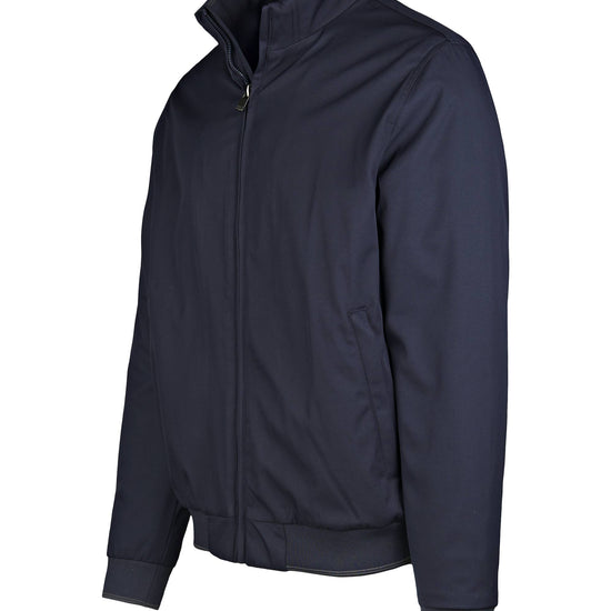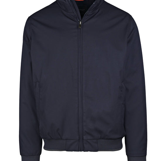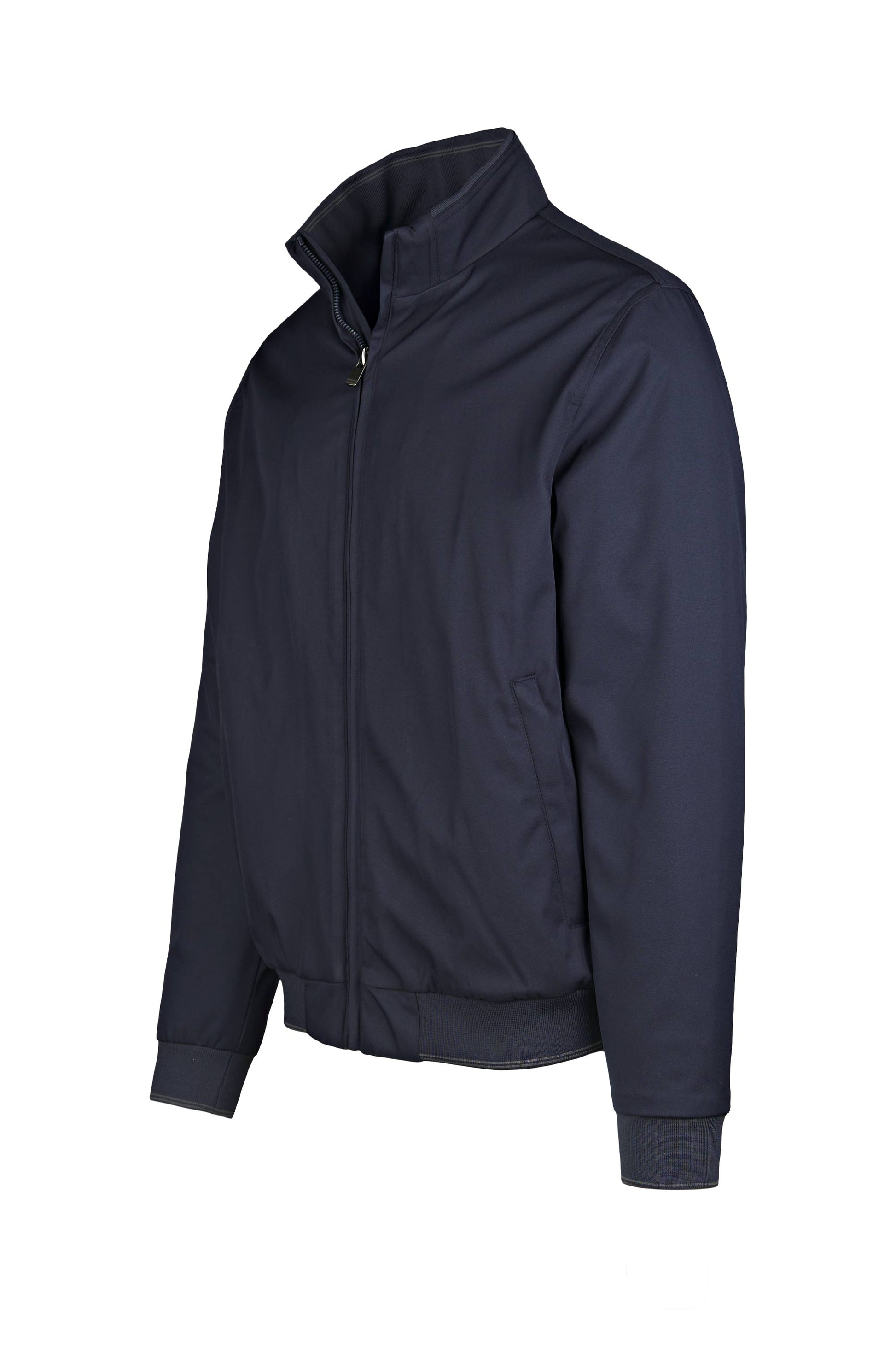 Bomber-style jacket updated with a tall stand collar for extra wind protection. The outer shell is a smooth, mattepolyester with a clean look; full-length front zipper that closes right up to the neck. Inside you’ll find TERMICO® light padding—warm yet lightweight, feather-free and comfortable—providing high thermal performance without bulk. The collar is lined in soft rib knit for skin comfort. Ribbed cuffs and hem keep the silhouette neat and seal in warmth, echoing the classic bomber DNA. Discreet zippered welt pockets sit at the sides, and tone-on-tone stitching keeps the look refined. Straight cut with a regular fit makes it easy to layer over denim, chinos or tech trousers.