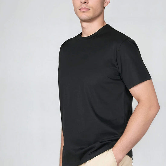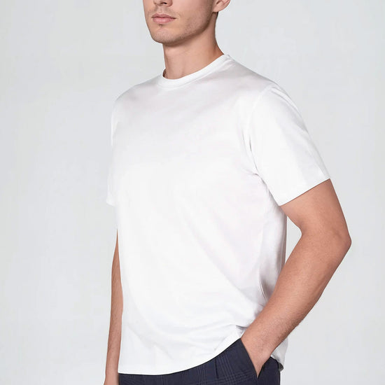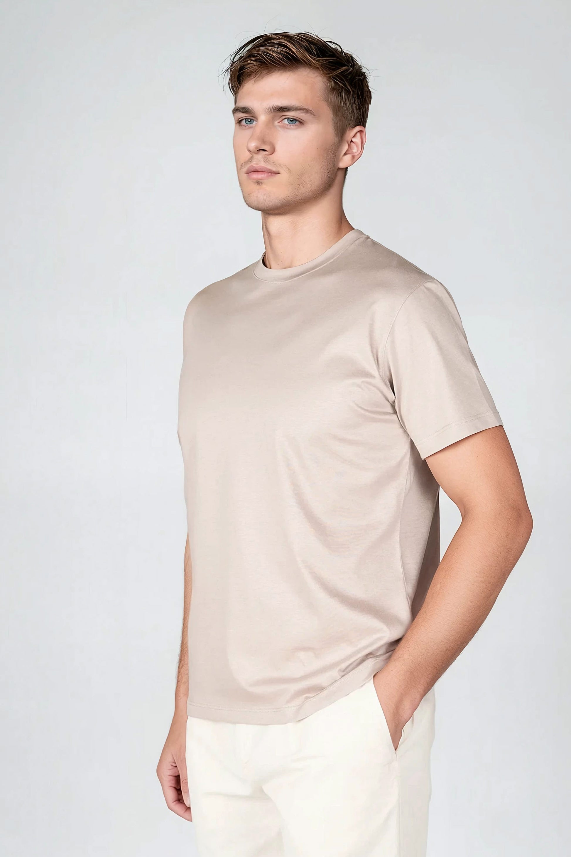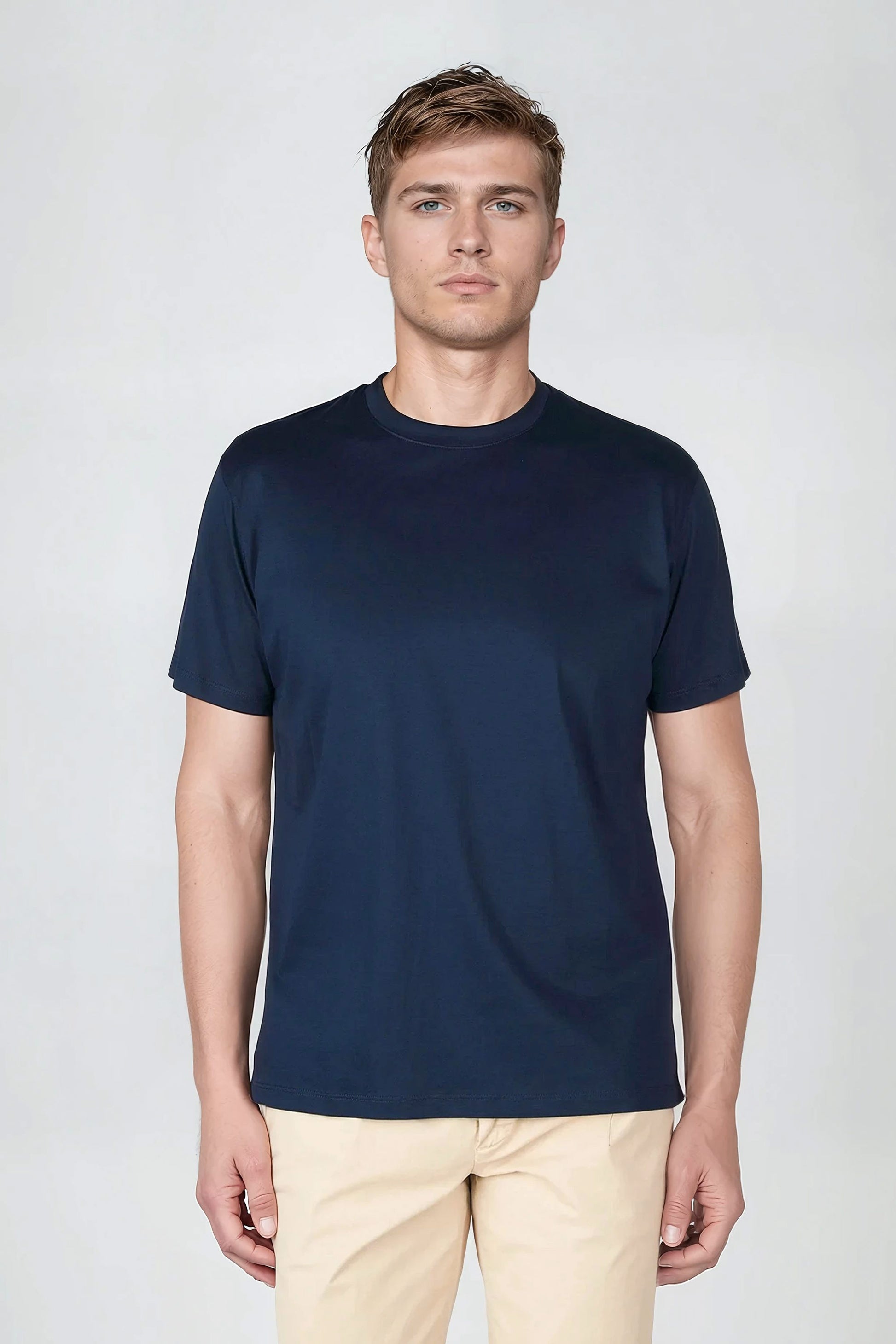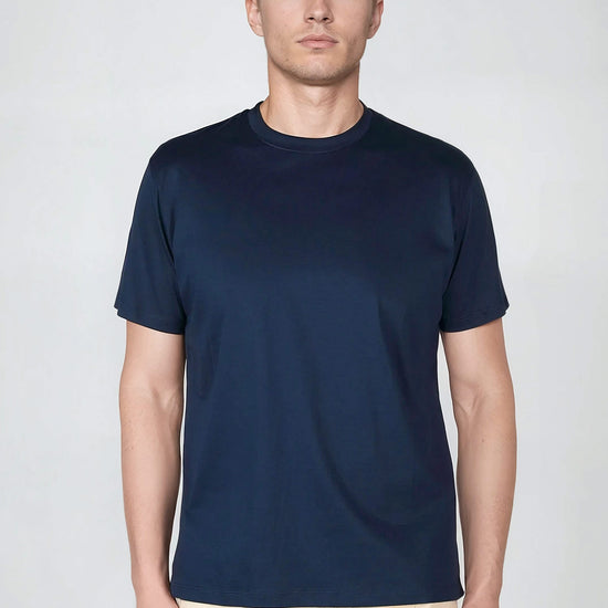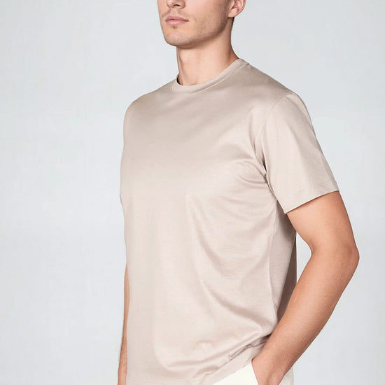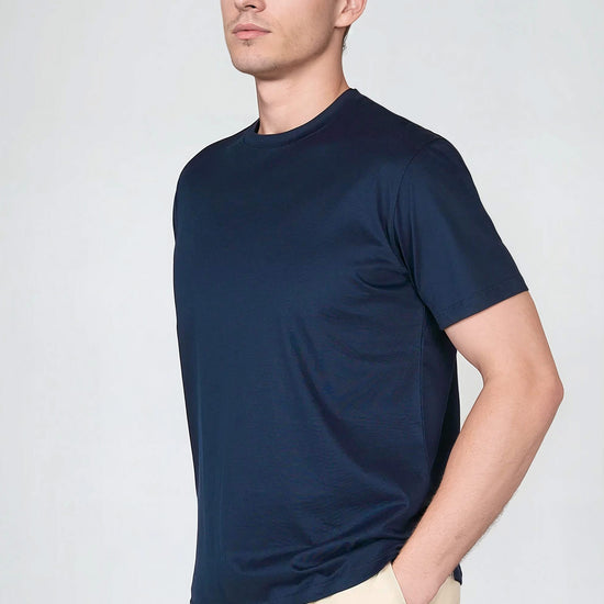 Essential and versatile, this modal-cotton jersey t-shirt blends comfort and freshness with a soft-touch feel. The slim fit and clean lines make it ideal under lightweight jackets or worn solo for a minimal, refined look.