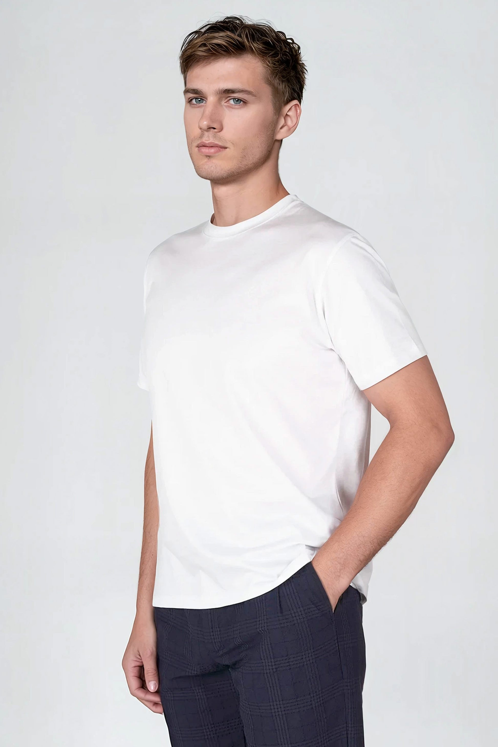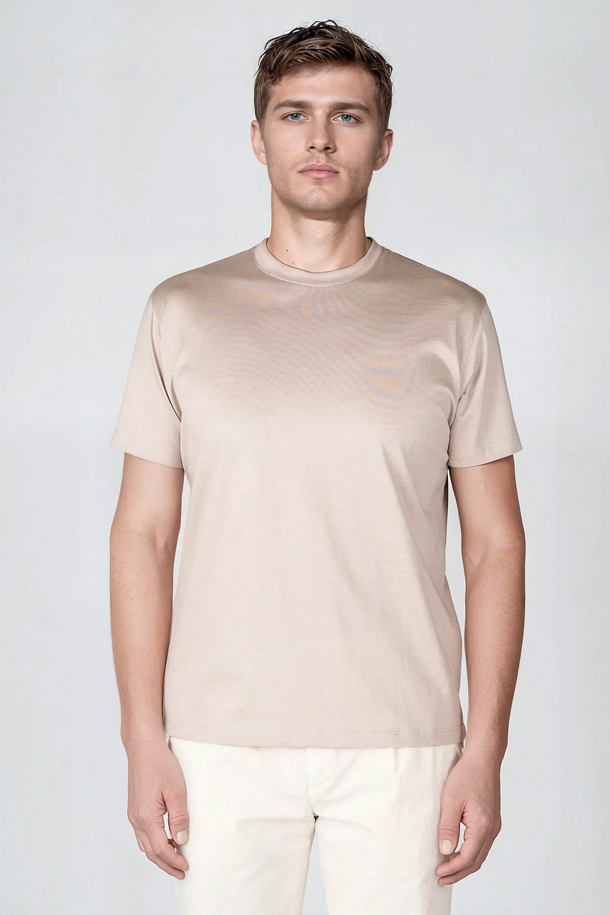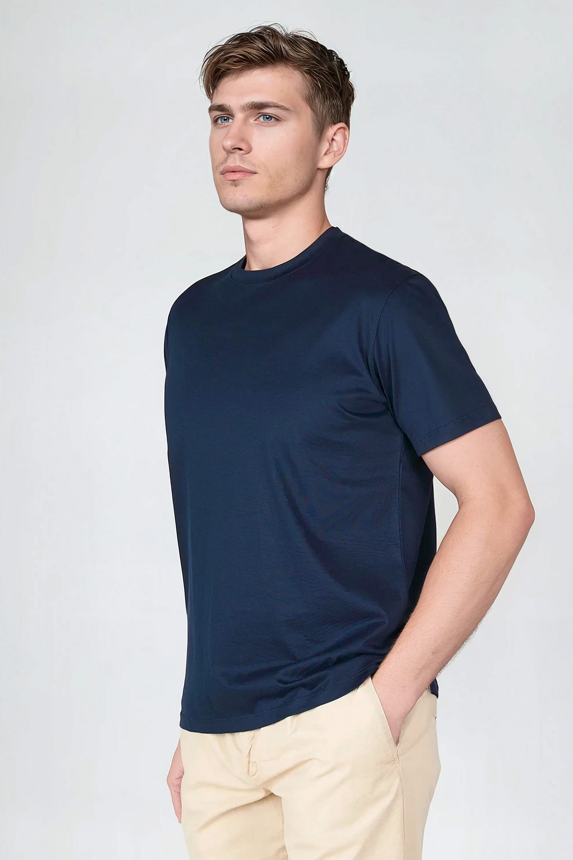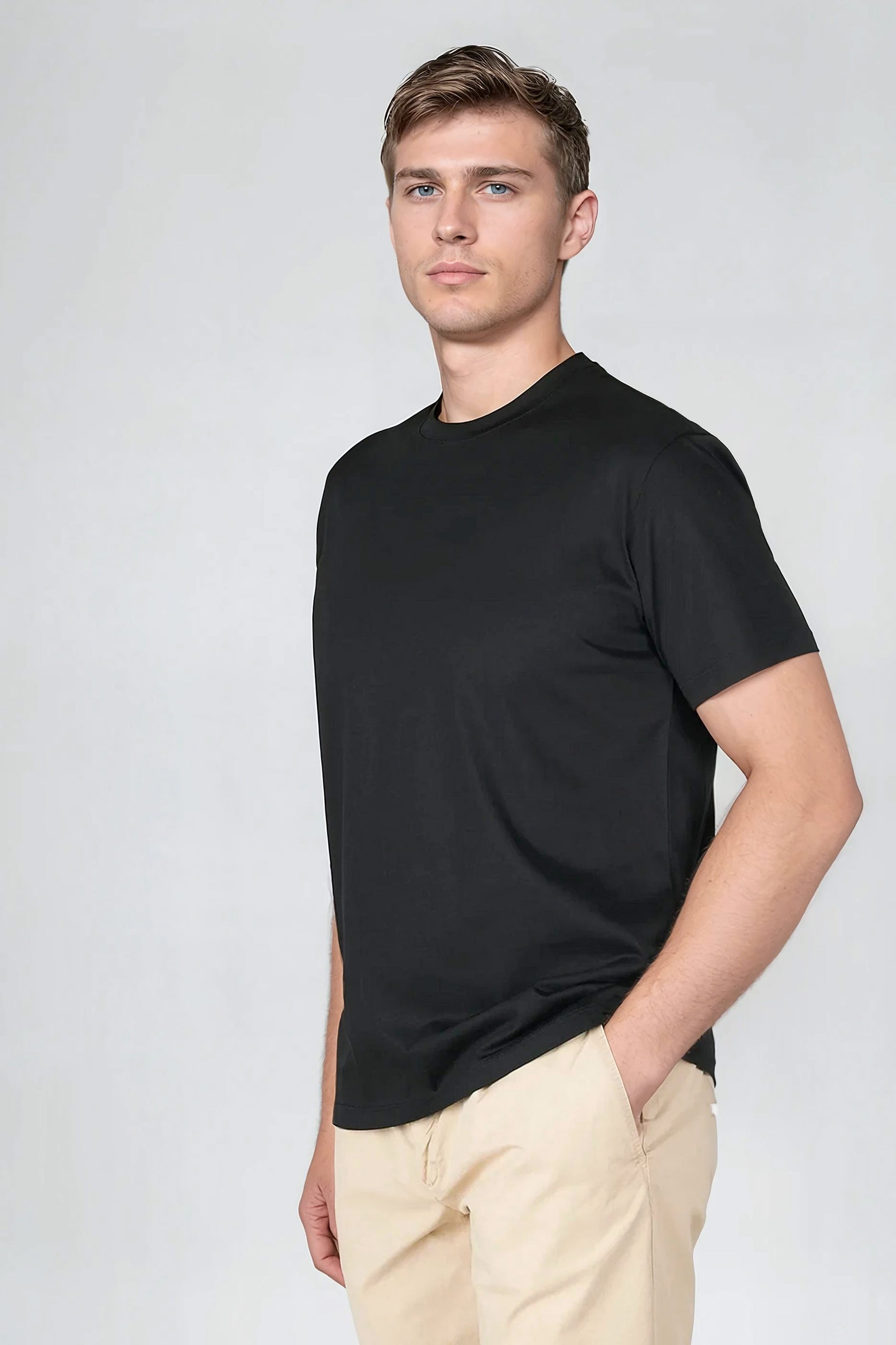 Essential and versatile, this modal-cotton jersey t-shirt blends comfort and freshness with a soft-touch feel. The slim fit and clean lines make it ideal under lightweight jackets or worn solo for a minimal, refined look.