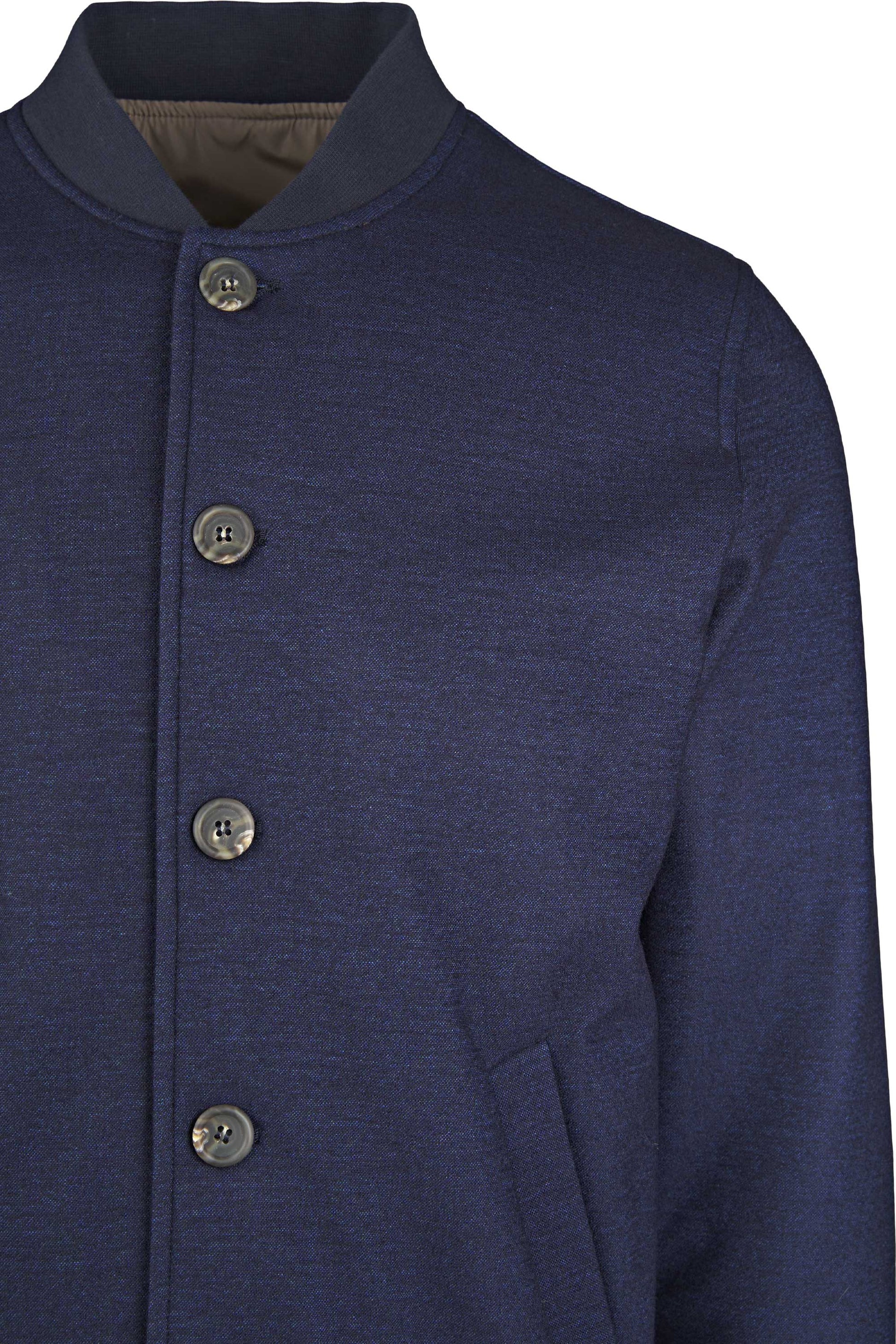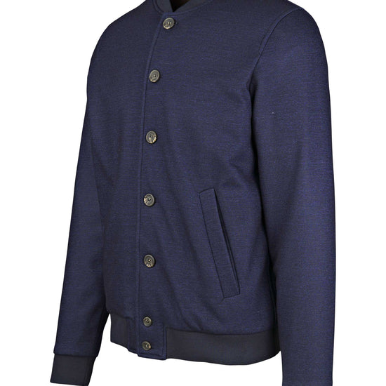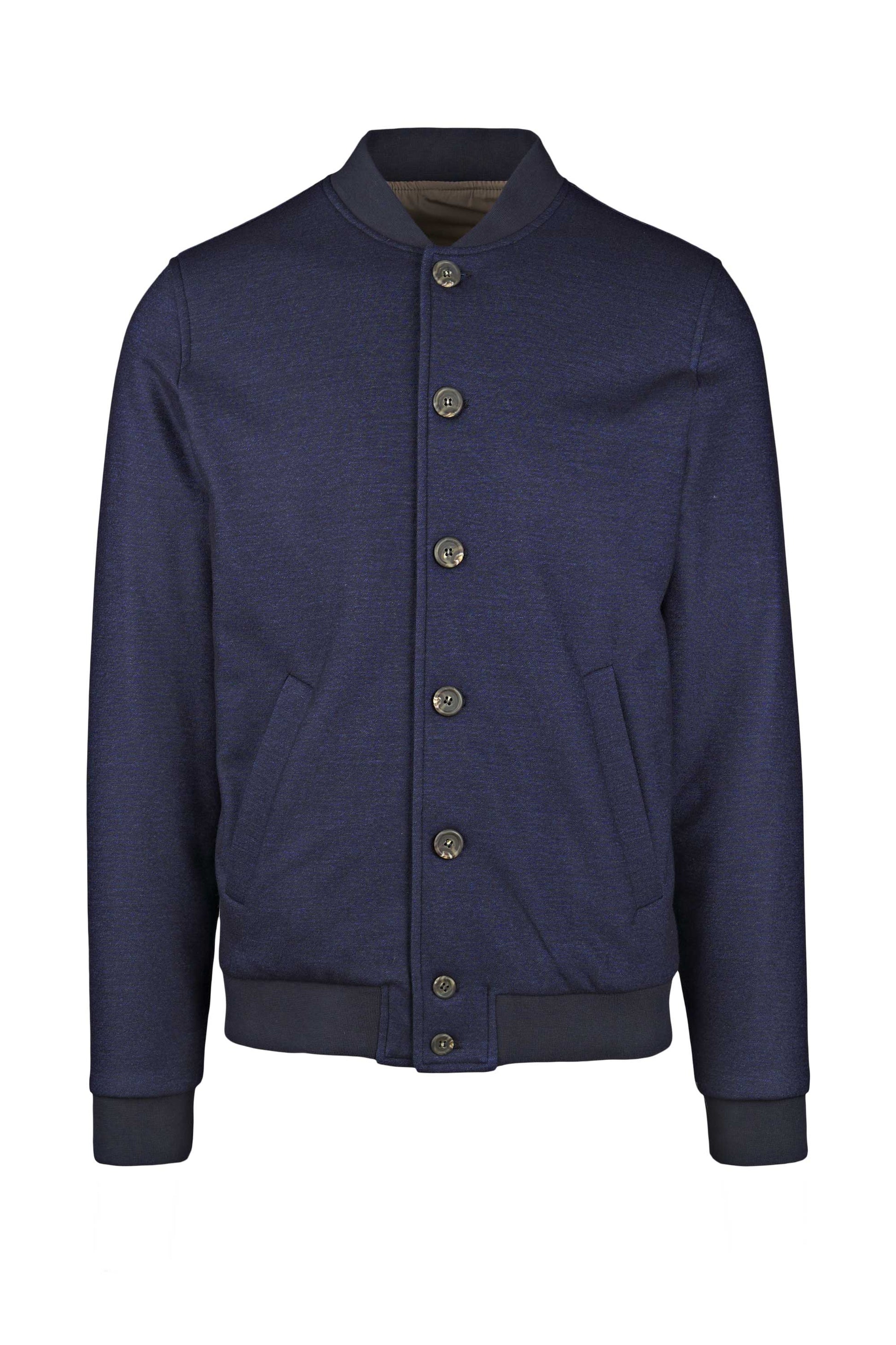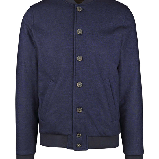 Padded bomber jacket crafted from a refined wool-cotton blend fabric with a compact, subtly textured hand. The clean silhouette is elevated by a sleek collar and natural horn buttons. The front closure is practical and continuous, with slanted side pockets for added functionality. Lightweight padding makes it ideal as a transitional layer, combining warmth with freedom of movement. A versatile piece for an essential yet polished urban look.