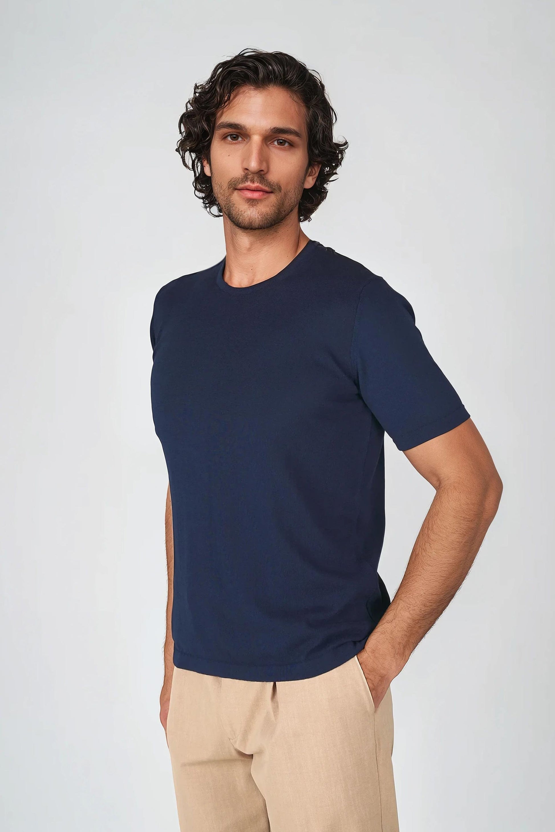 A minimalist essential reimagined in pure crepe cotton, this short-sleeve T-shirt is crafted for comfort and sophistication. The crepe knit texture gives it a dry, breathable handfeel—ideal for warmer days. Featuring a clean crew neckline, tailored regular fit, and sleeves that hit just above the elbow, it’s versatile enough to wear solo or layered under a lightweight blazer. The refined construction makes it a wardrobe staple for effortless, elevated looks.