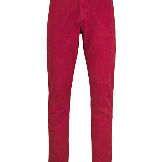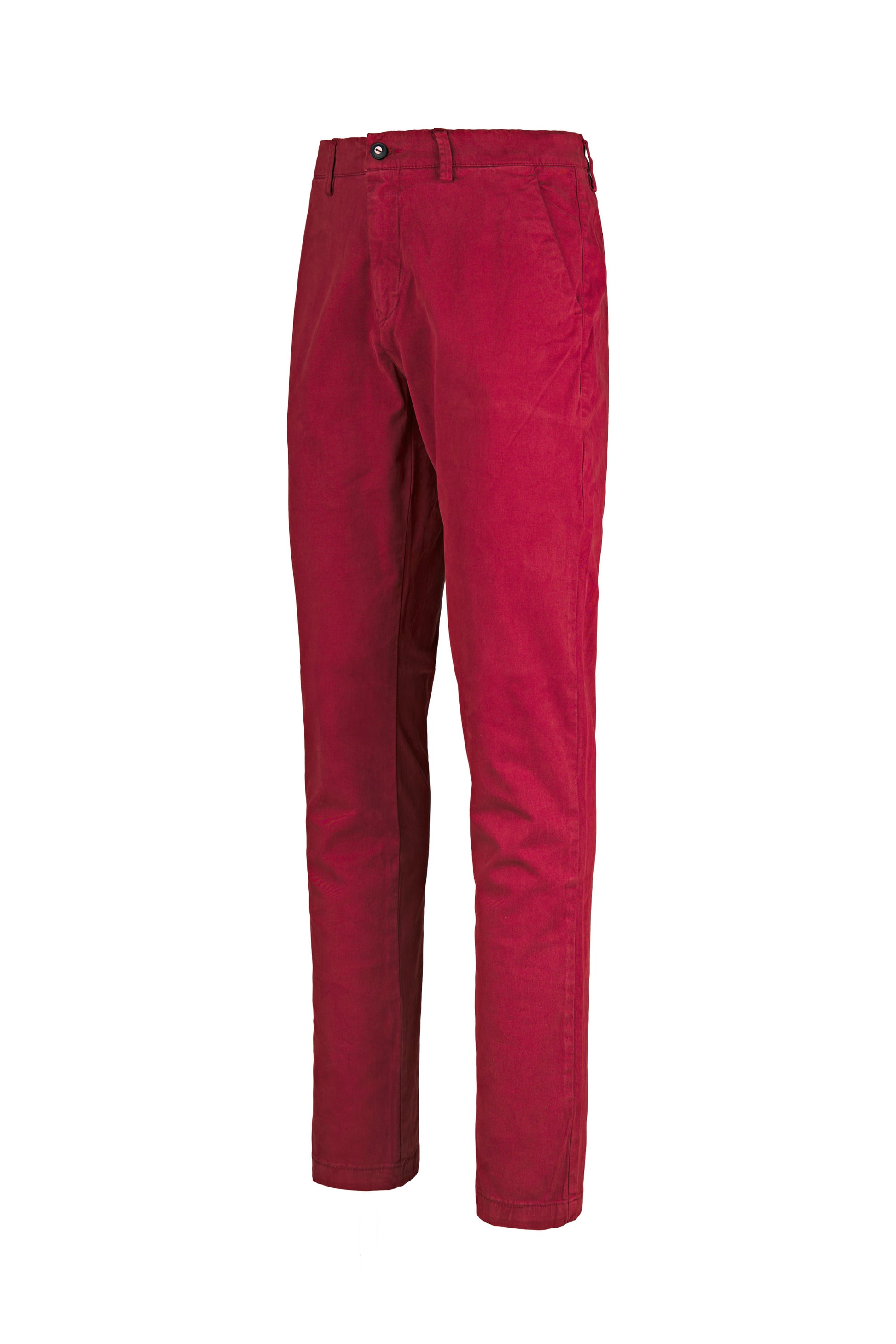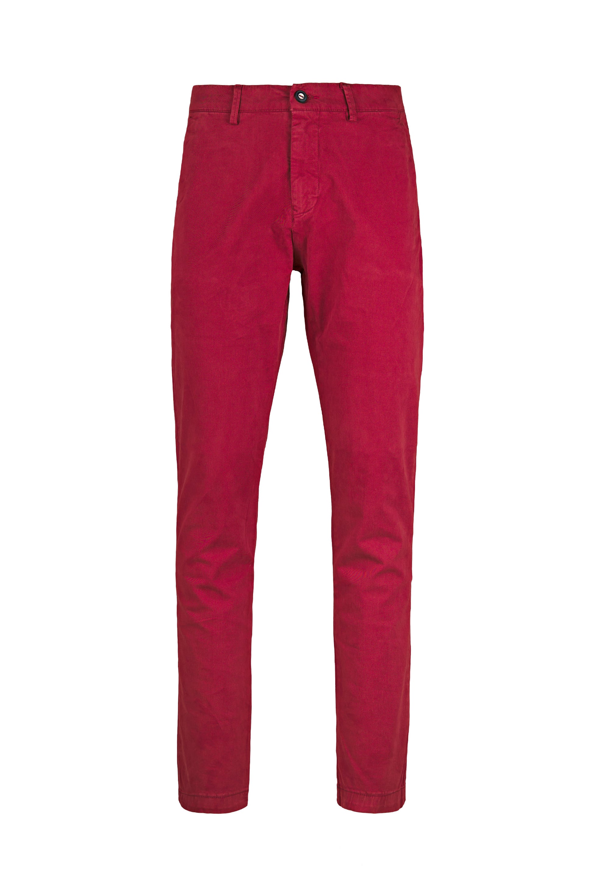 Clean and practical, these stretch cotton chinos balance smart looks with everyday comfort. A mid-rise waistband with belt loops and a flat-front silhouette keep the line neat, while slanted French pockets offer easy access. The fly closes with a concealed zip and a waist button under a clean placket. The leg is straight and gently tapered for a slim, non-restrictive profile; the lightly elastic twill provides freedom of movement and retains its shape throughout the day.