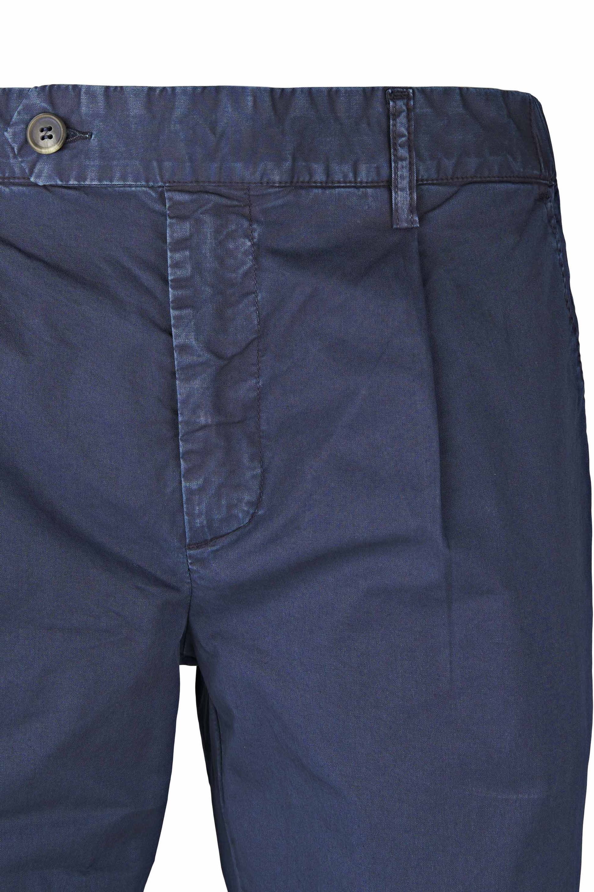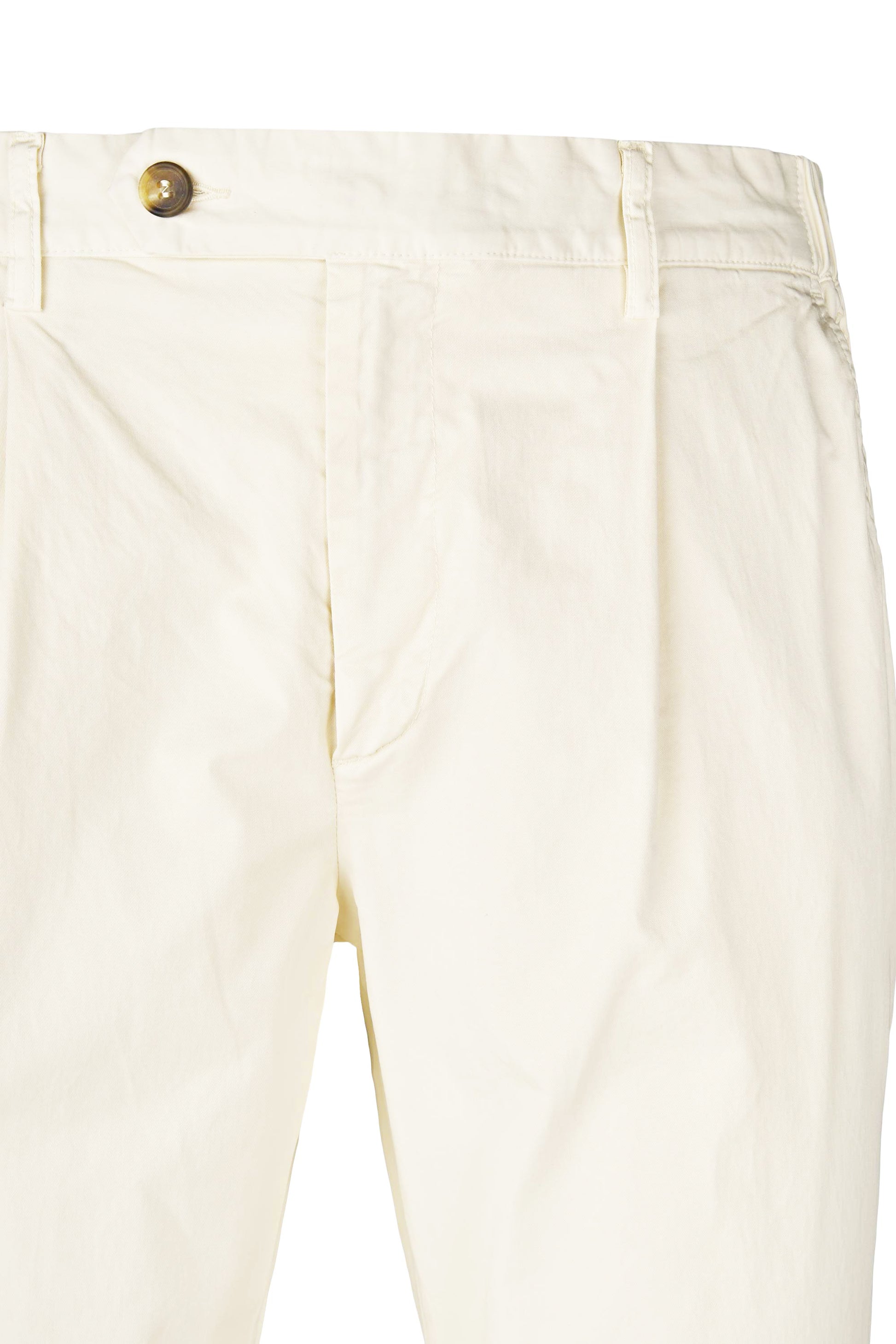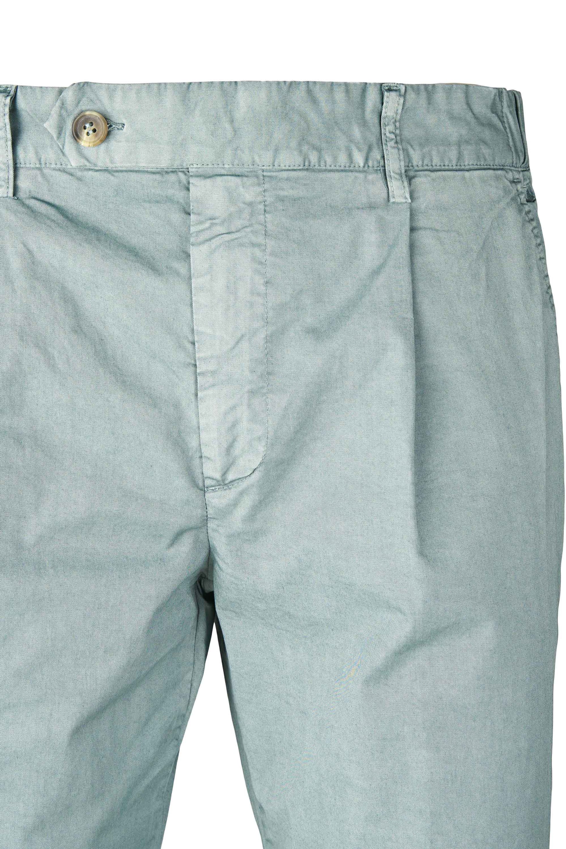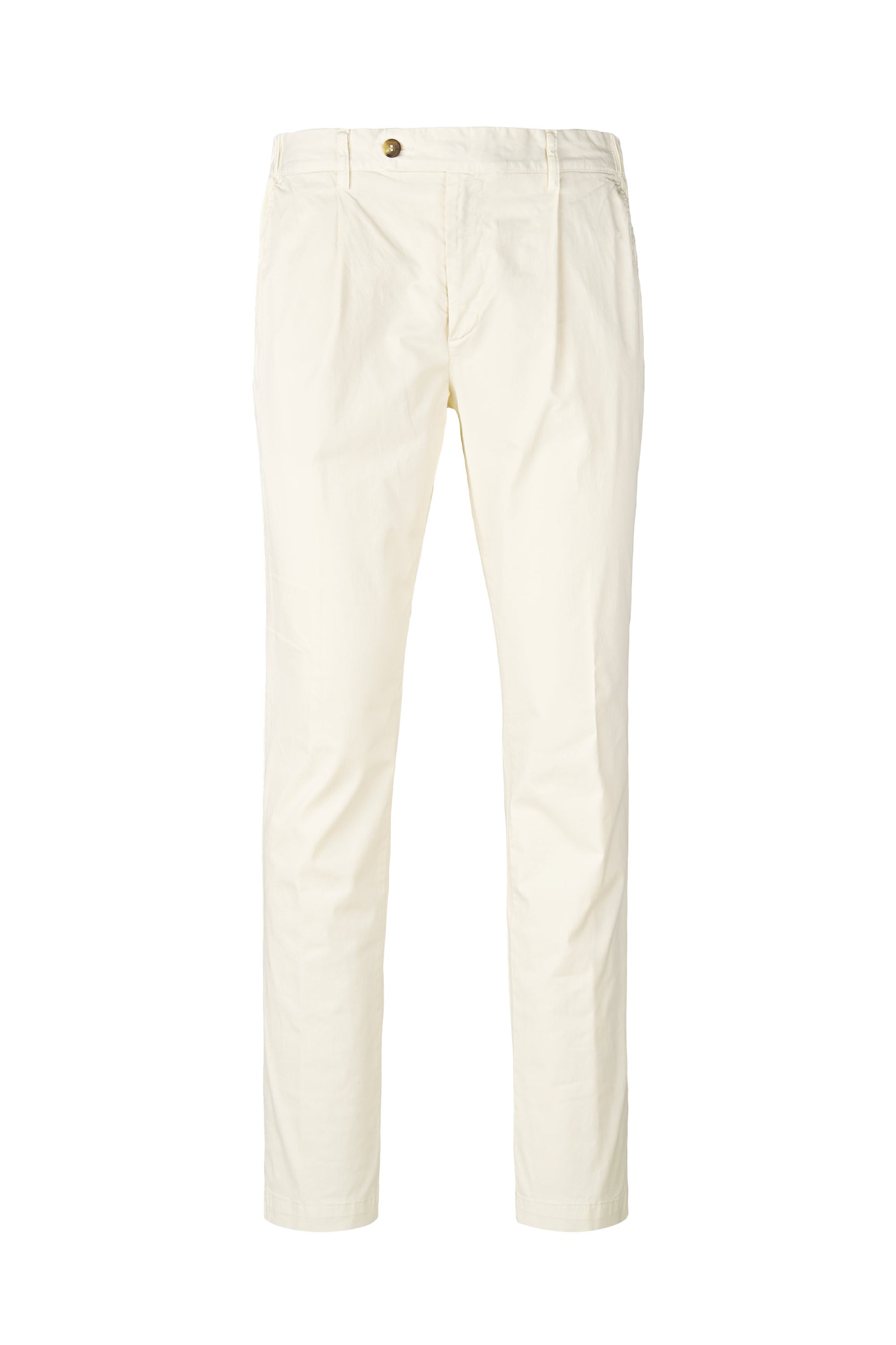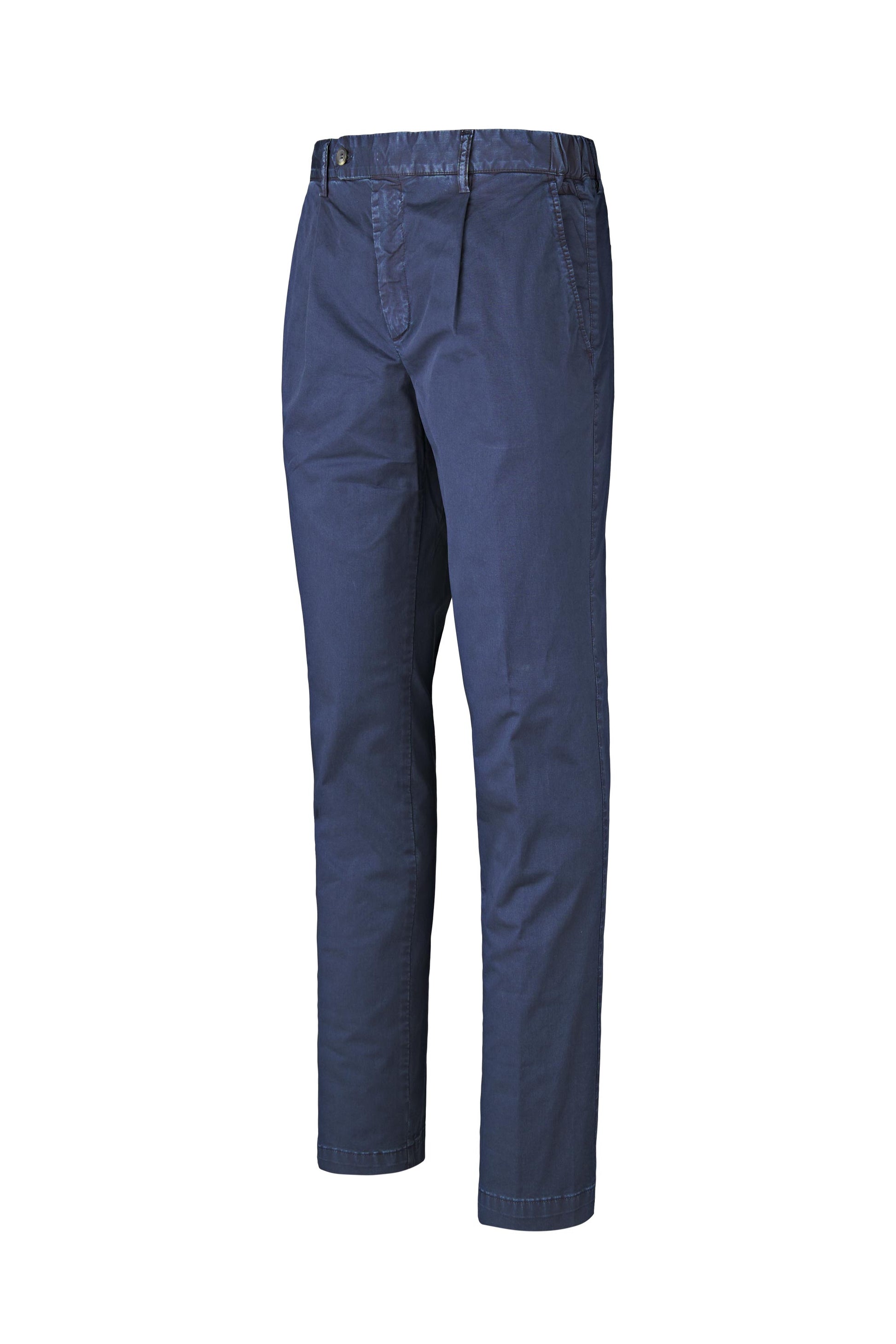 Lightweight stretch cotton twill trousers featuring a washed effect. Designed with front pleats, angled side pockets, and comfortable fit. Perfect for a refined casual look.
