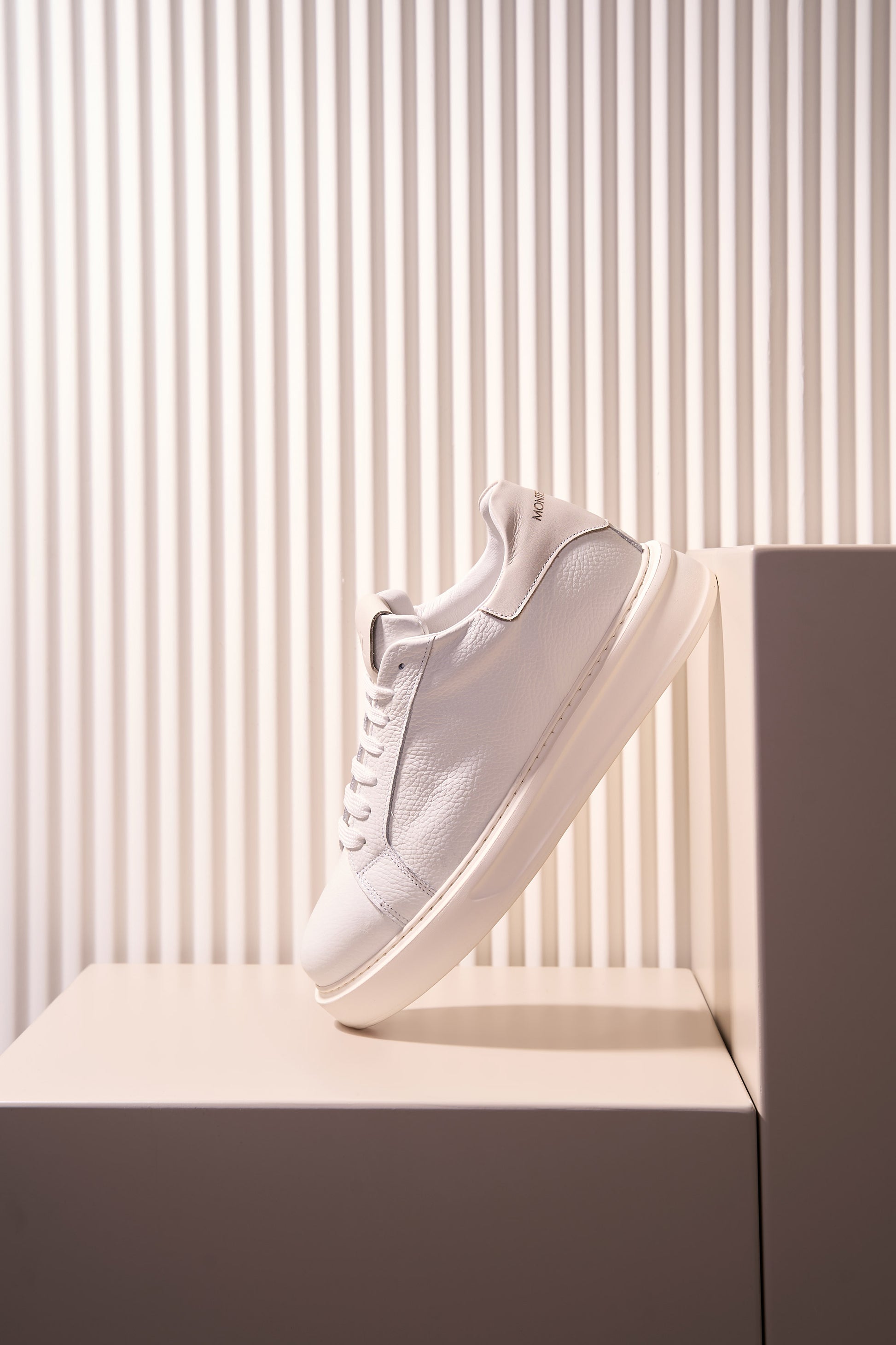Pebbled leather upper, extralight expanded‑rubber sole, tone‑on‑tone laces, padded logo tongue, branded heel tab, leather lining, removable insole, lightweight cushioning