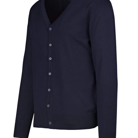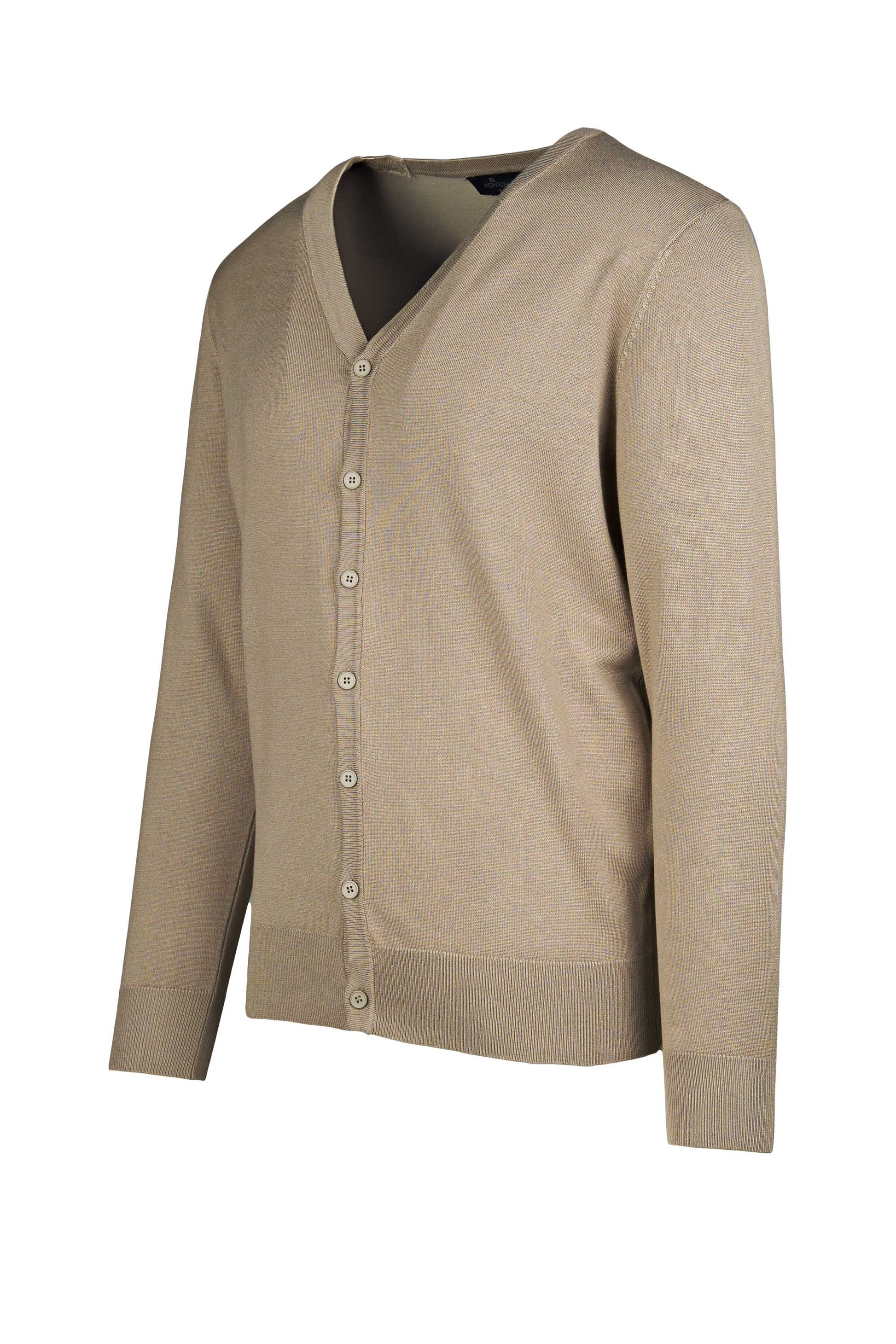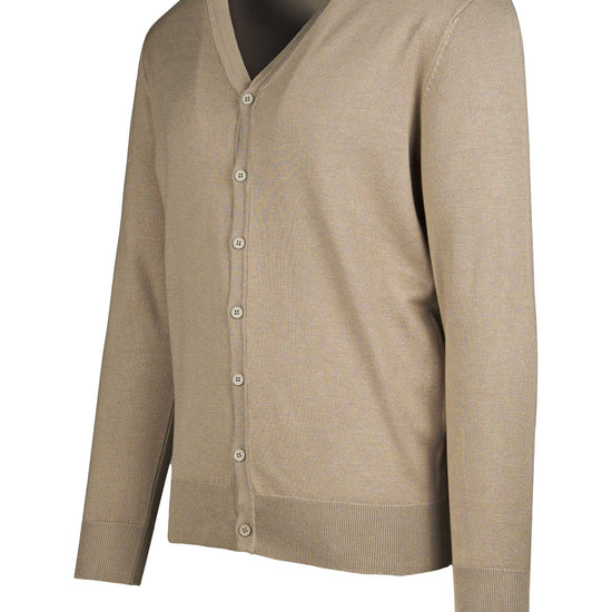 A clean, lightweight cardigan knitted in viscose for a silky touch and fluid drape for everyday outfits. The V-neck is framed by a fine rib trim that continues along the buttoned placket; fully-fashioned shoulders deliver a neat, comfortable fit. Ribbed cuffs and hem help the garment keep its shape, while the fine gauge makes it easy to layer over a tee or a shirt. The minimal aesthetic gives it a modern smart-casual attitude. Available in three colors.