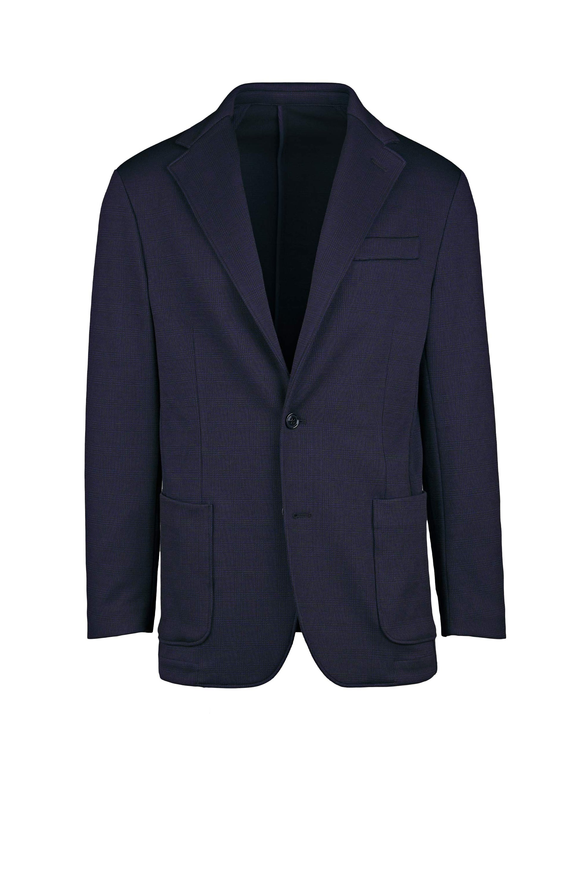This ZMART blazer blends the sartorial appeal of a tone-on-tone Prince of Wales pattern with the comfort of compact stretch jersey. A deconstructed, clean interior and flexible hand deliver ease of movement and a consistently sharp look—perfect for business, travel and smart-casual wear. Notch lapels, a two-button front and generous patch pockets create a modern, versatile silhouette that pairs effortlessly with tailored trousers, chinos or denim.